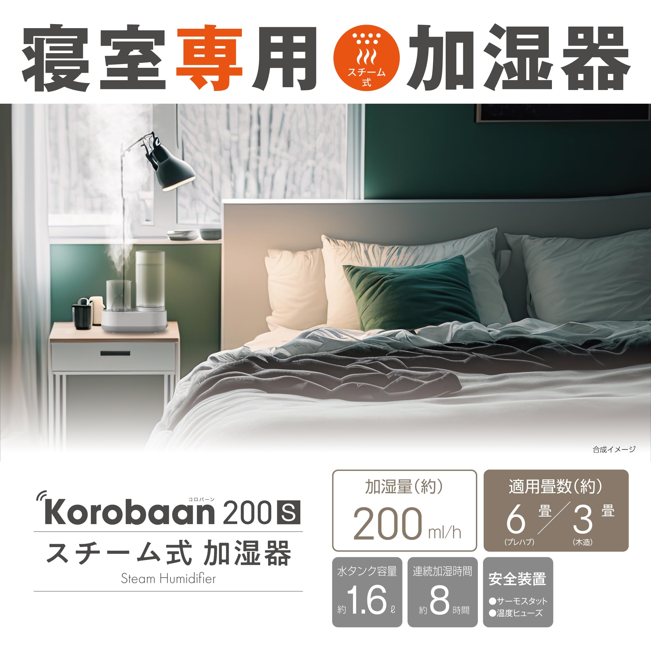 【新着商品】【寝室専用の加湿器】ドウシシャ 加湿器 スチーム式 容量1.6L 木造3畳 プレハブ6畳 加湿量200ml/h 連続加湿時間8時間 サーモスタット 温度ヒューズ ガラス仕様 Korobaan 200S ホワイト