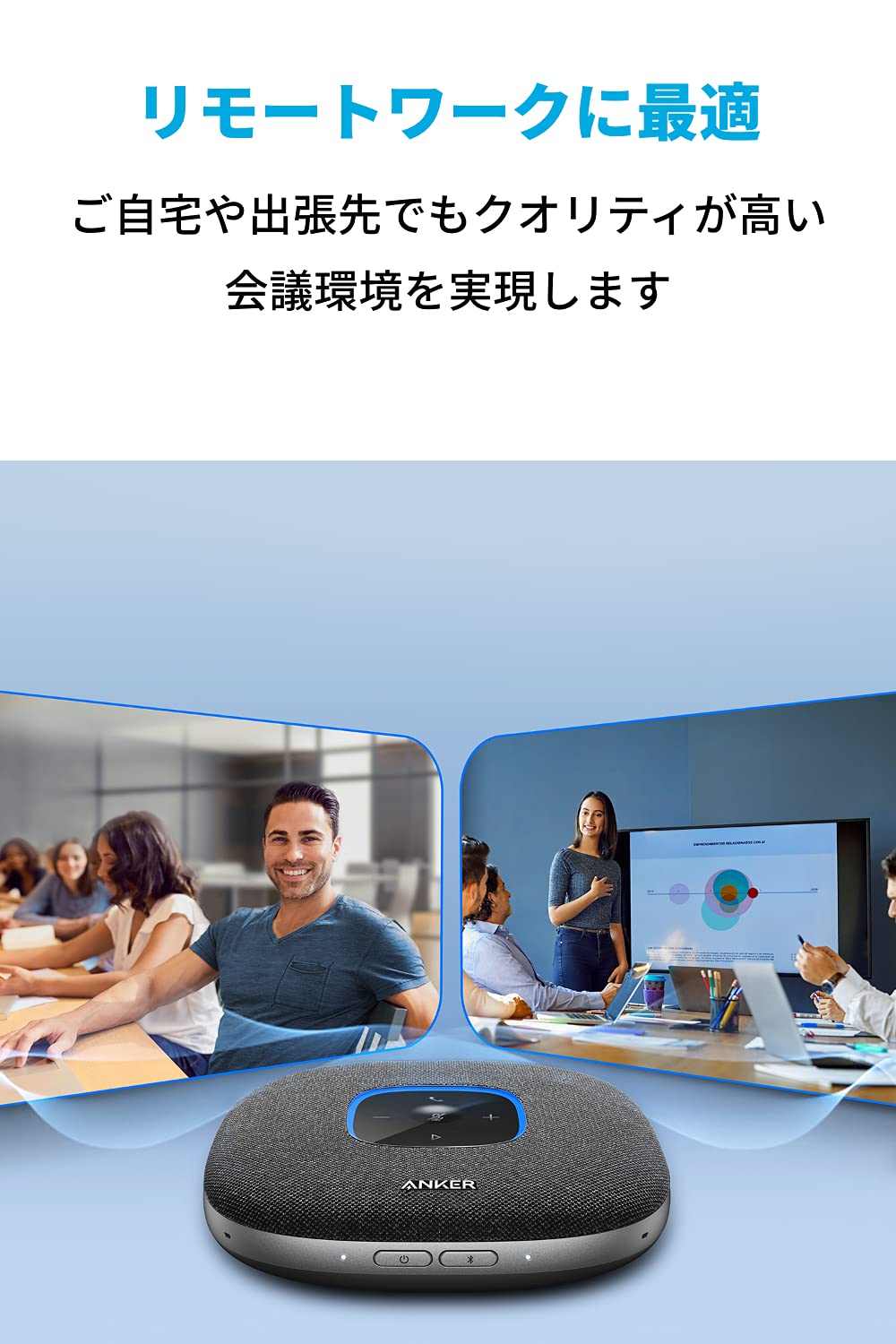 【人気商品】Anker PowerConf S3 スピーカーフォン 会議用 マイク Bluetooth 24時間連続使用 グループモード対応 USB-C接続 オンライン会議 テレワーク 在宅 会議用システム ウェブ/テレビ/ビデオ会議(グレー:ファブリック)
