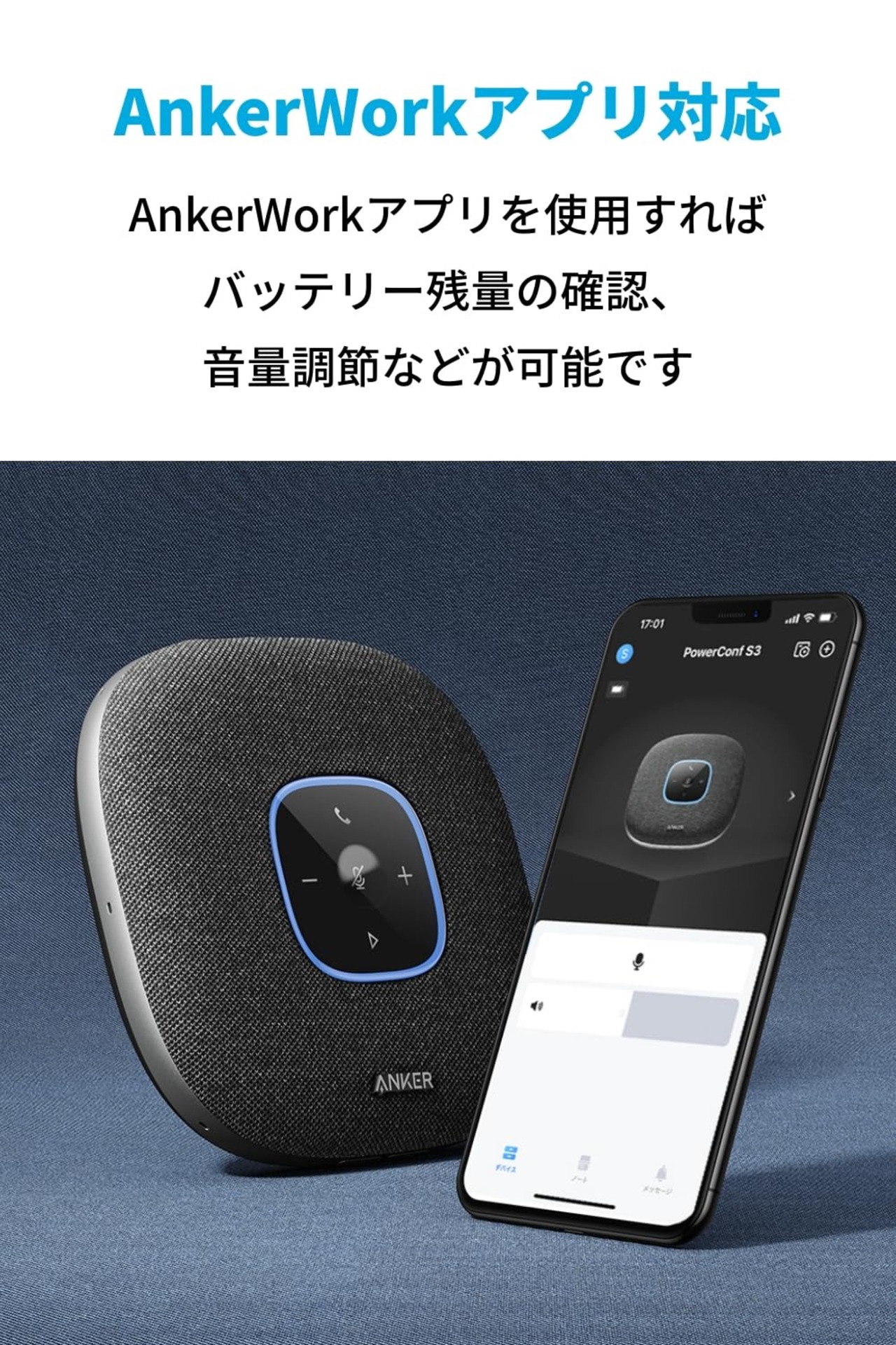Anker PowerConf S3 スピーカーフォン 会議用 マイク Bluetooth 24時間連続使用 グループモード対応 USB-C接続 オンライン会議 テレワーク 在宅 会議用システム ウェブ/テレビ/ビデオ会議(グレー:ファブリック)