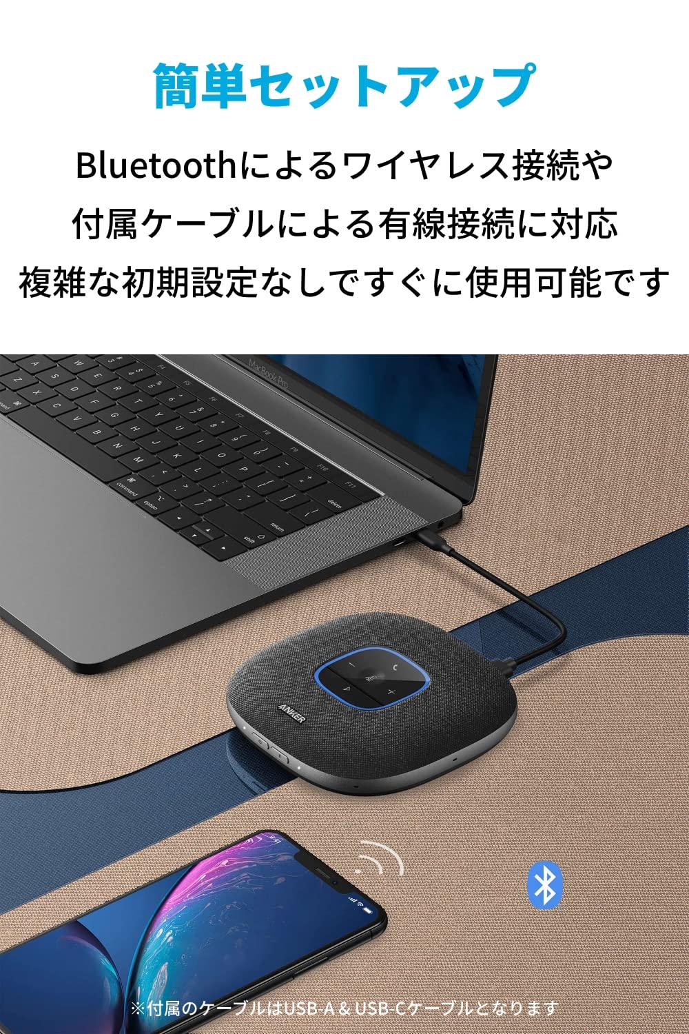 簡単セットアップと高い利便性:Bluetoothによるワイヤレス接続と付属のUSB-C & USB-Aケーブルでの有線接続に対応しており、複雑な初期設定をすることなく簡単に使用することができます。