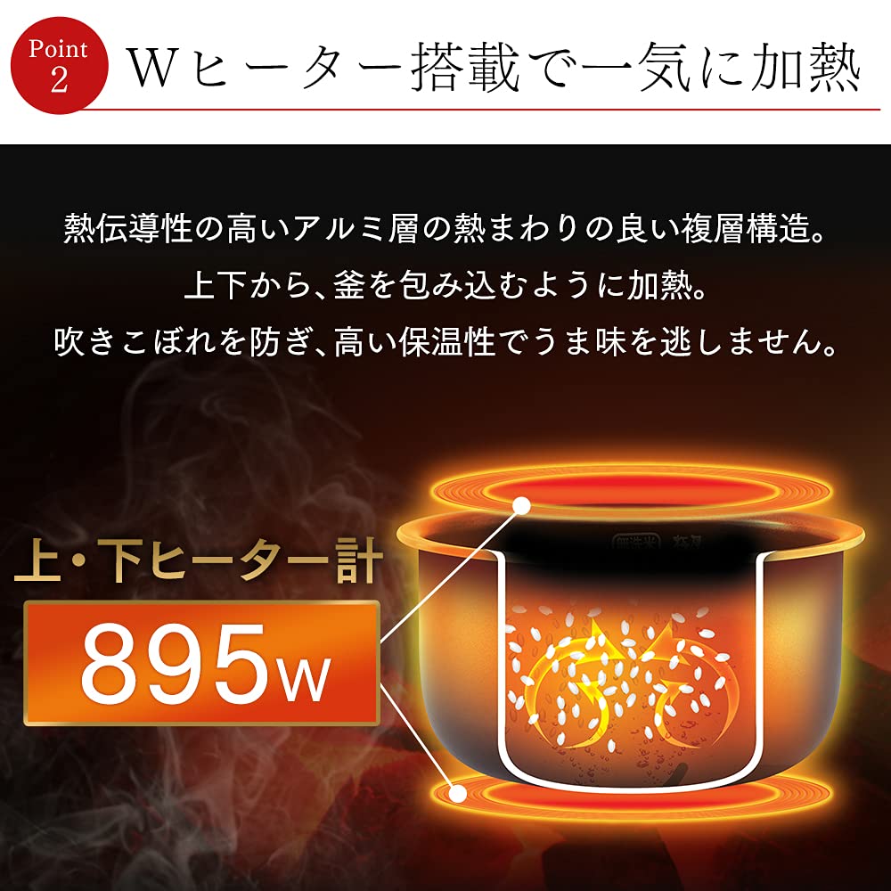 上下から釜を包み込むように加熱し、吹きこぼれを防ぎ高い保温性でうま味を逃しません。