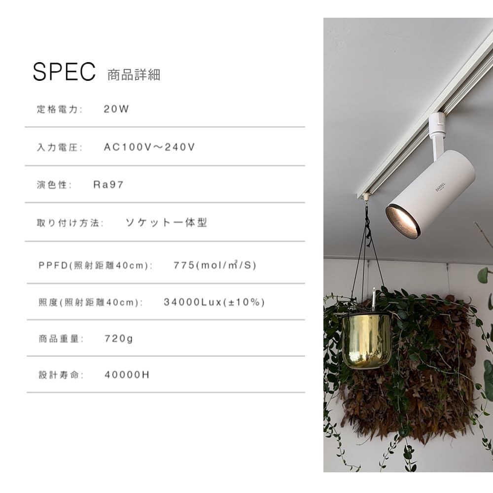 【2022最新】【BARREL公式代理店】HADES-85-20W ホワイト 植物育成ライト LED スポット 高演色 多機能 観葉植物 多肉植物 室内栽培 省エネ 長寿命
