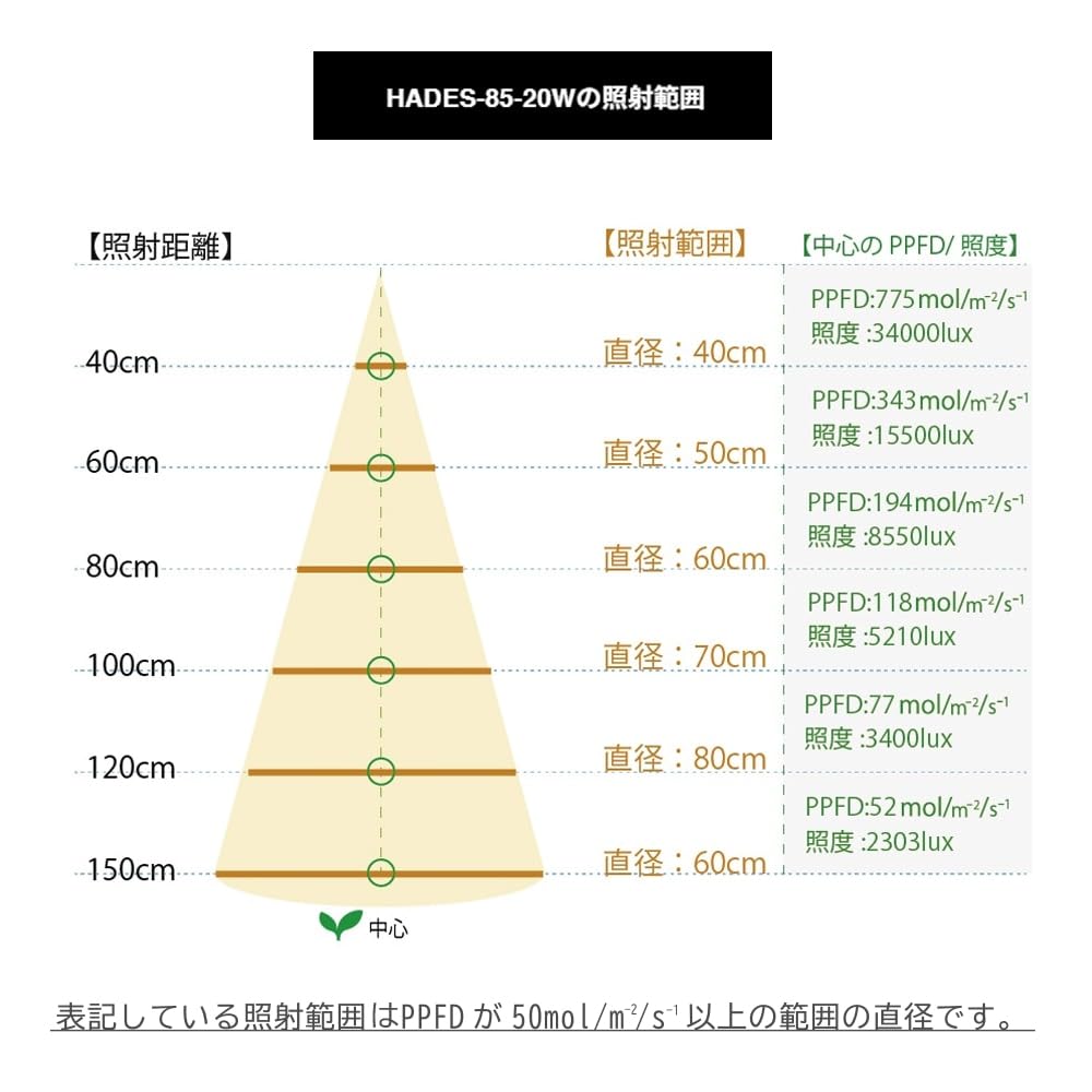 PPFD:(照射距離40cmの時)775(μmol/㎡s )(±10%)