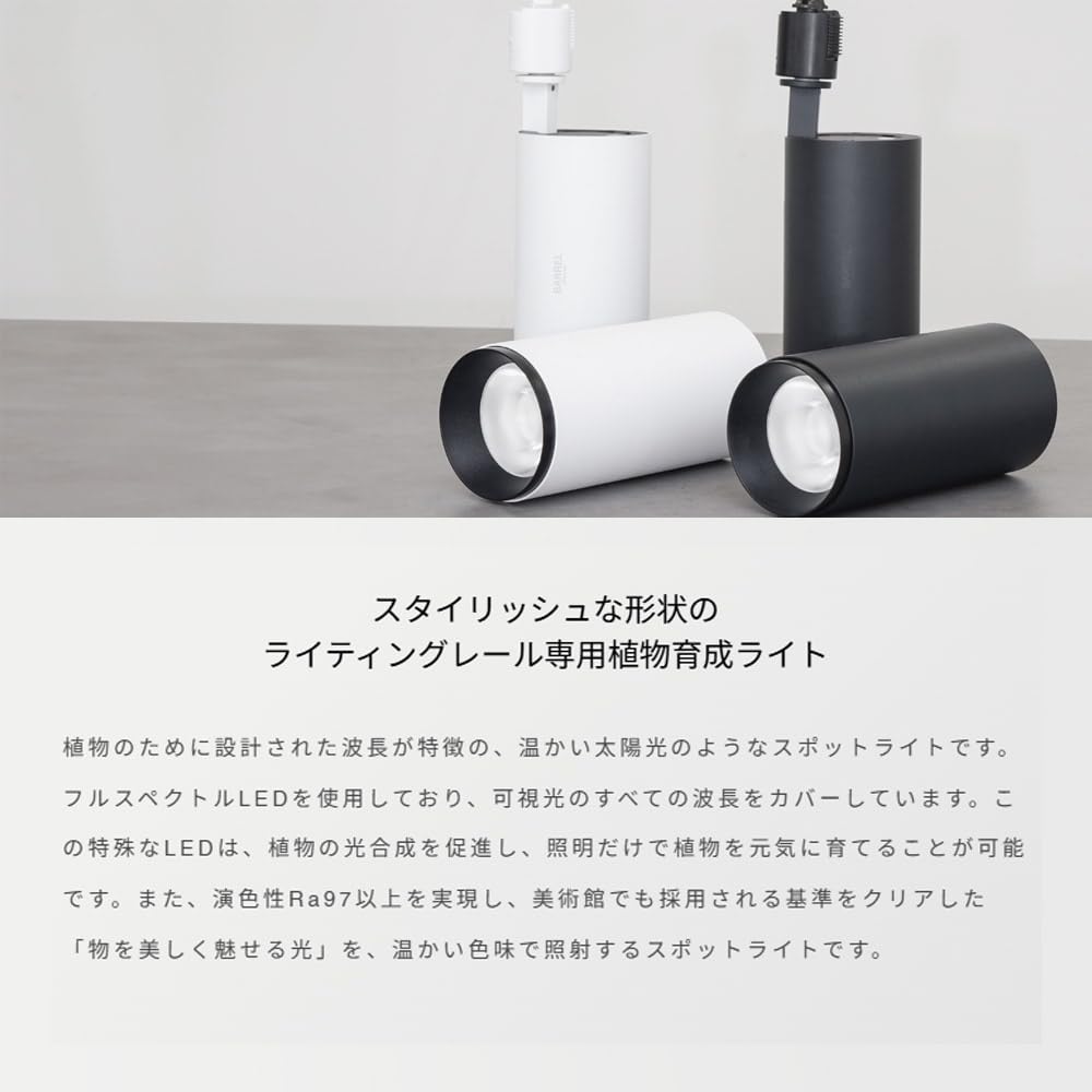 スタイリッシュでインテリアにも馴染む、ライティングレール専用の植物育成LEDライトです。