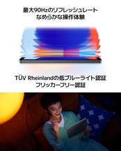 【90Hzリフレッシュレート対応ディスプレイ】コンパクトでありながら、90Hzの高リフレッシュレートにより、映像を観る時やコンテンツをスクロールする時の表示をよりなめらかに表現。最大600nitsのピーク輝度で屋外での視認性も高く、日差しの下でも、クリアのままお気に入りのコンテンツを視聴できます。TÜV Rheinlandの低ブルーライト認証とフリッカーフリー認証を取得、長時間の使用による目の疲れを軽減。