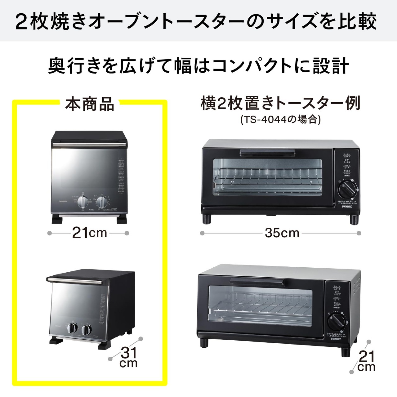 ツインバード オーブントースター 2枚焼き 横幅21cm 960W 4段階切替 コンパクト ミラーデザイン 黒 ブラック TS-D037PB