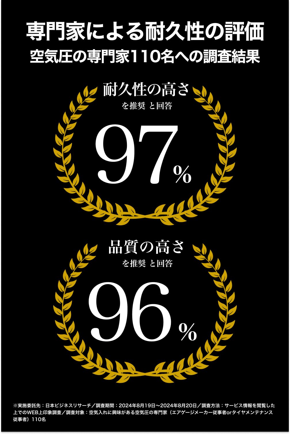 精密な空気圧センサーで空気圧を正確に測定し、適正な値で自動停止するため、タイヤの性能を最大限に引き出せます。