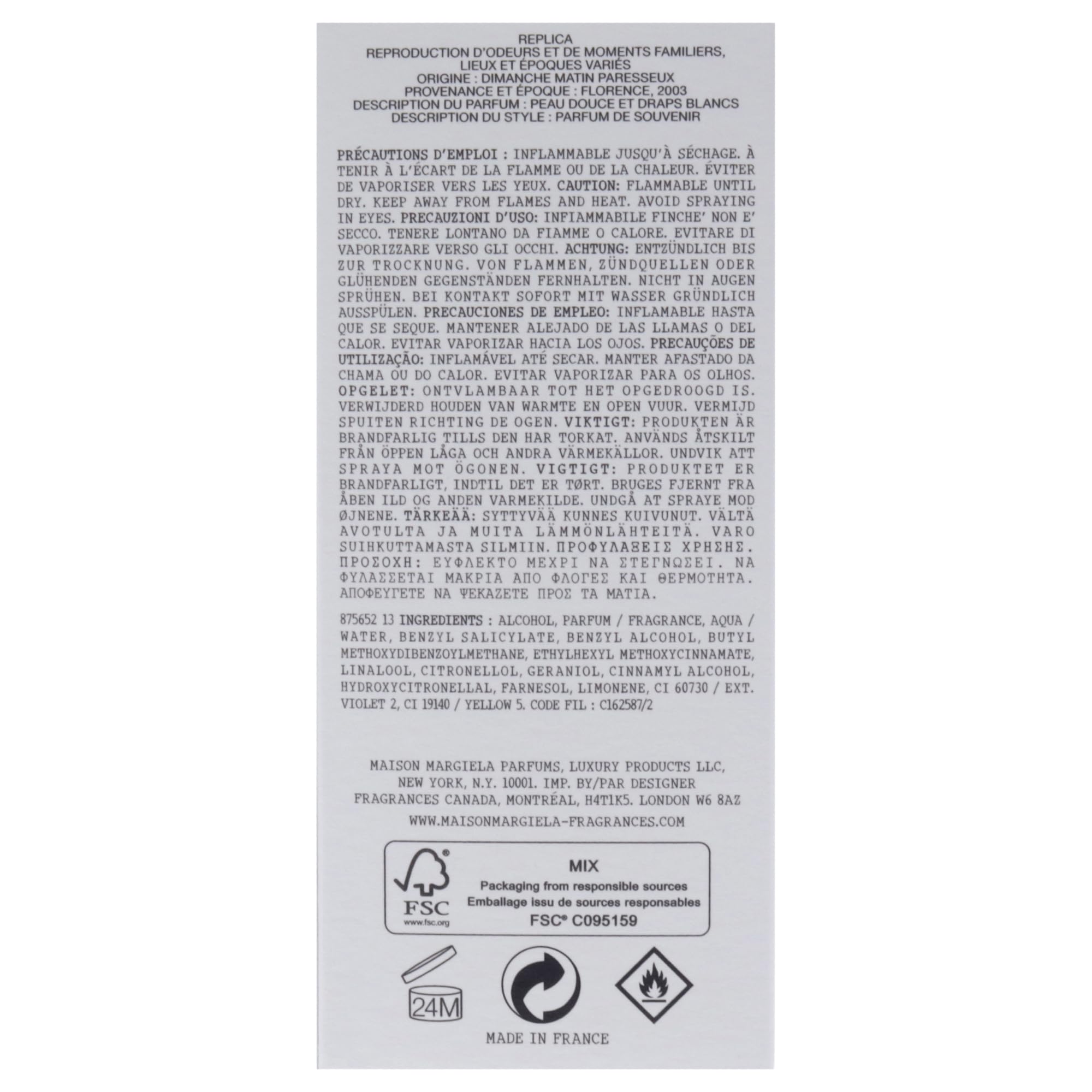 日曜日の朝、洗い立てのやわらかいリネンのシーツに包まれて過ごす心地良い時間をイメージしたレプリカ オードトワレ レイジーサンデー モーニング。