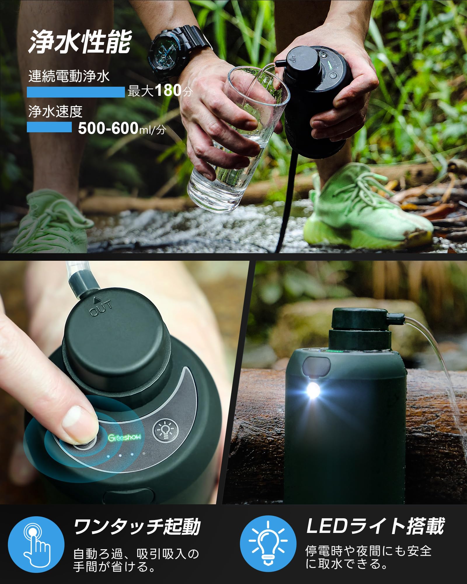 【2022最新】GreeShow【業界新発想】 携帯浄水器 アウトドア 濾過器 サバイバル浄水器 USB電動 登山 キャンプ 野営 災害用 防災用 グッズ 軽量 LED電灯搭載 GS-2801 フィルター 2個セット(ディープグリーン) | ニコニコSHOP