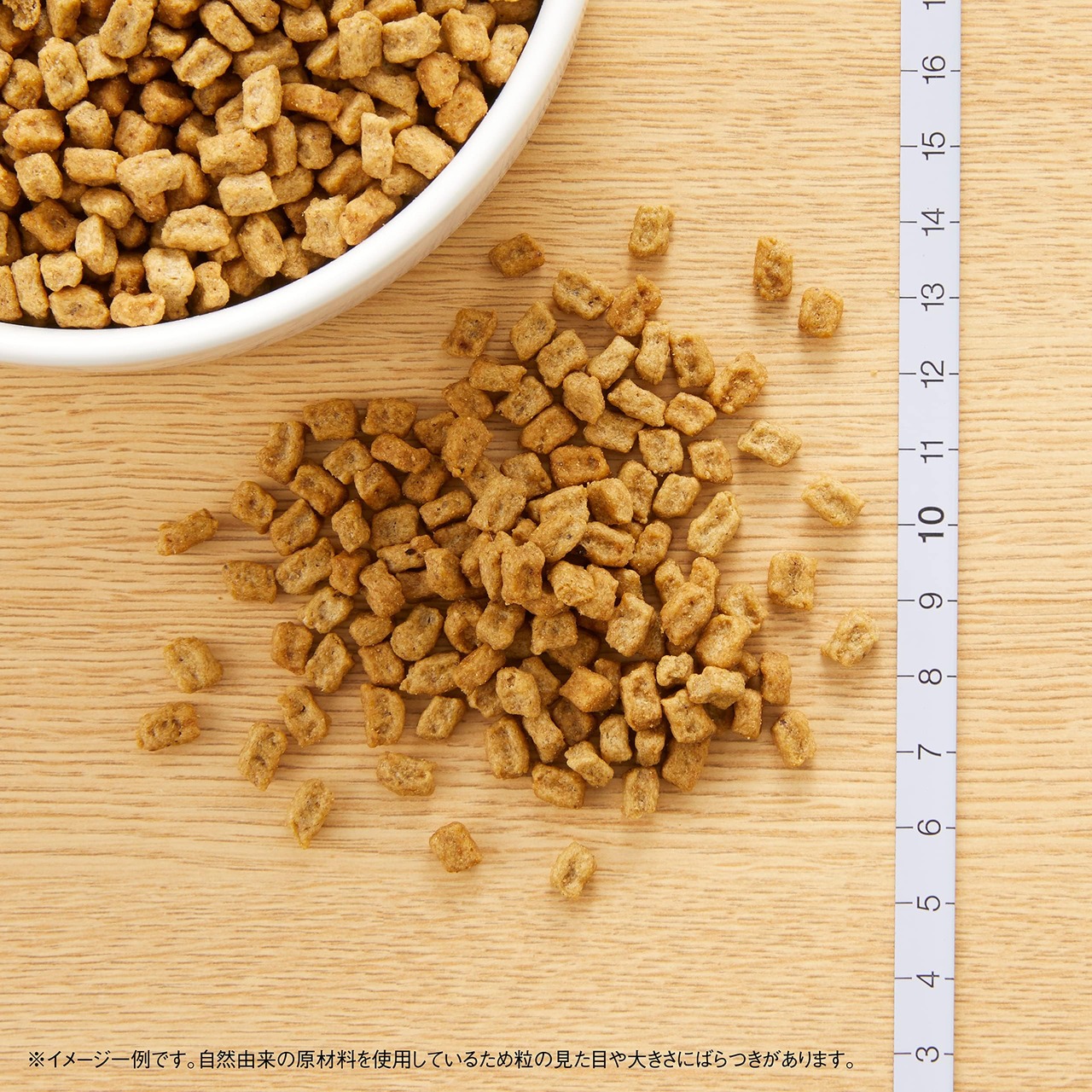 独自の極小粒設計:超小型犬~小型犬でもおいしく食べられるよう粒を小さくし、噛ませるために独自の形状を工夫。