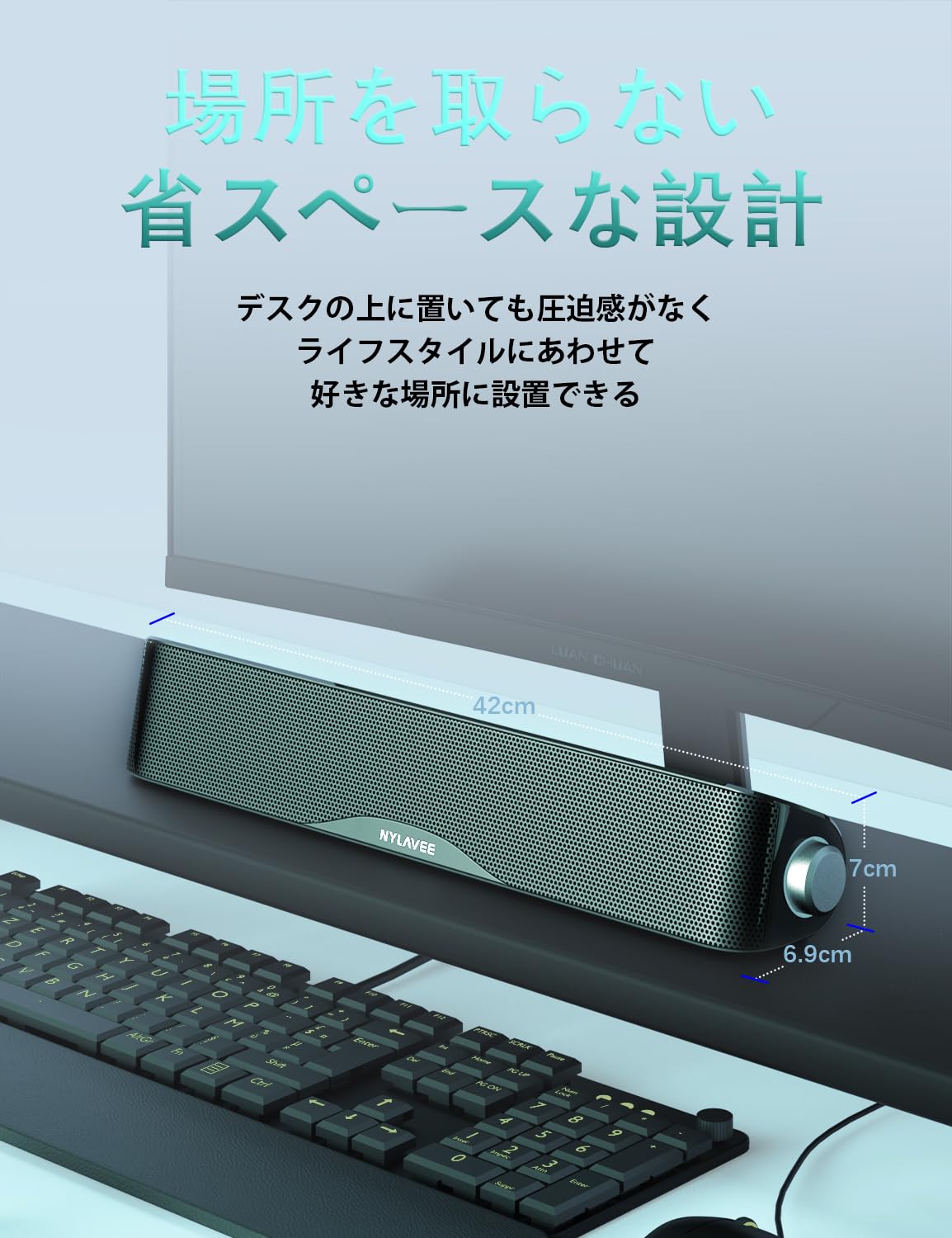 【新着商品】Nylavee PCスピーカー サウンドバー Bluetooth & AUX接続 六つのスピーカーユニット 10W ステレオ 大音量&豊かな低音 ラップトップ、タブレット、スマートフォンに対応、USB給電式のパソコンスピーカー | ニコニコSHOP
