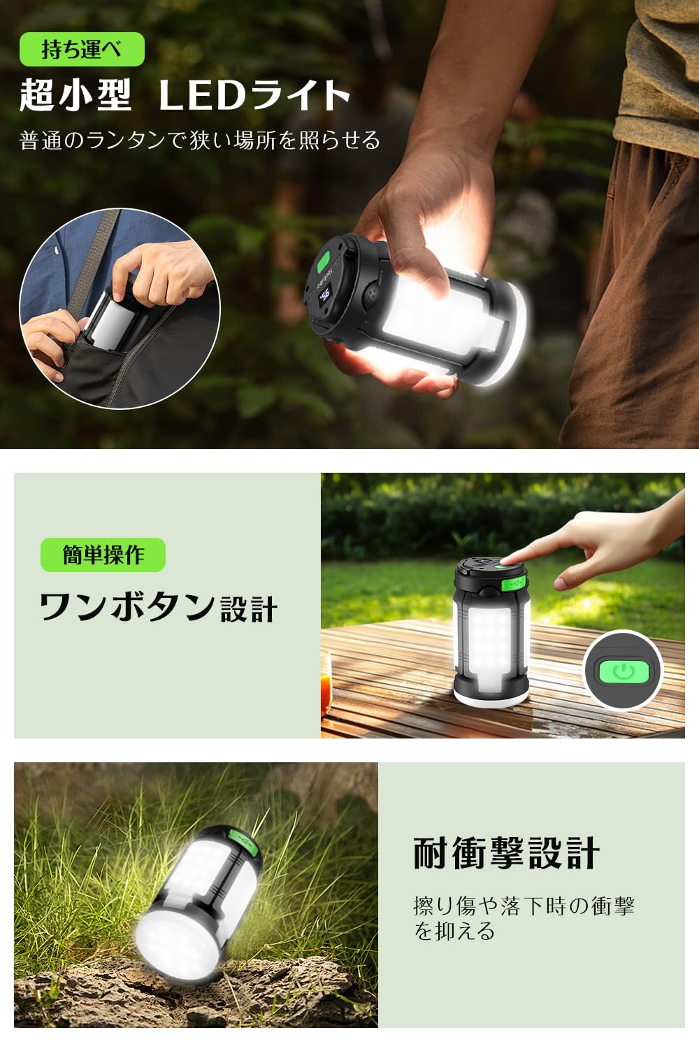 【様々なシーンで使用可能 一年保証付き】ランタンとしてテント内の照明、夜釣り、バーベキュー、車中泊、日常使用、地震対策、キャンプ、登山、防犯、防災、停電、非常時、緊急時、夜間作業時に重宝します。お買い上げの日付より一年のメーカー保証が付いております。万が一不具合・故障がある場合は、商品ページの販売店舗名をクリックして、「質問する」ボタンより店舗までご連絡いただければ迅速に対応いたします。【パッケージ内容】LEDランタン本体、充電コード、取扱説明書。