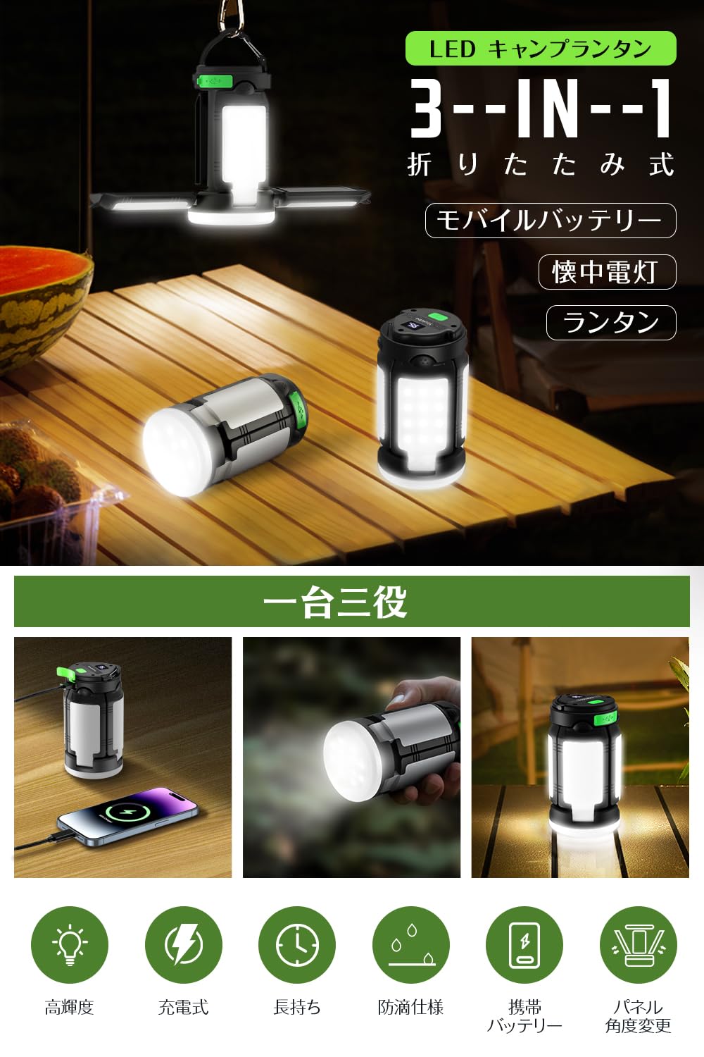 LEDランタン 充電式 【超高輝度5面照射 折りたたみ式】 小型 キャンプランタン 大容量3200mAh 多様調光モード 吊り下げ&卓上置き 懐中電灯兼用 キャンプライト モバイルバッテリー機能 IP65 防水 防塵 テントライト ワンボタン 簡単操作 コンパクト 携帯便利 led ランタン ソロキャンプ アウトドア キャンプ 登山 夜釣り 防災 停電 緊急 非常用 応急灯 (黒)