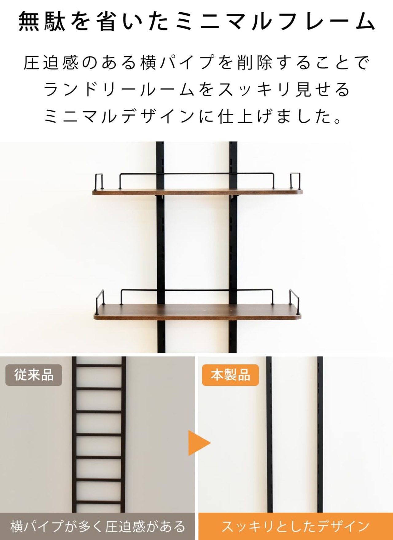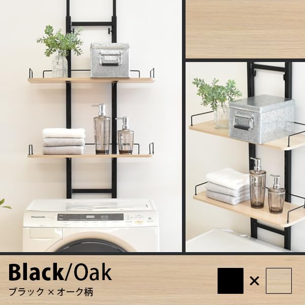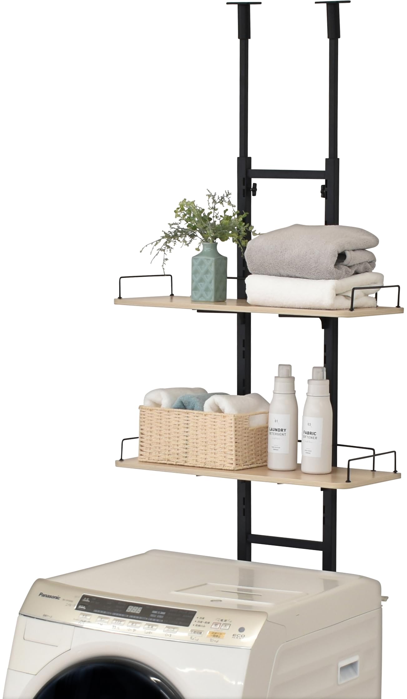 ekans(エカンズ) 棚付きランドリーラック 棚2段 突っ張りタイプ LSH-T200BN (ブラック×オーク)