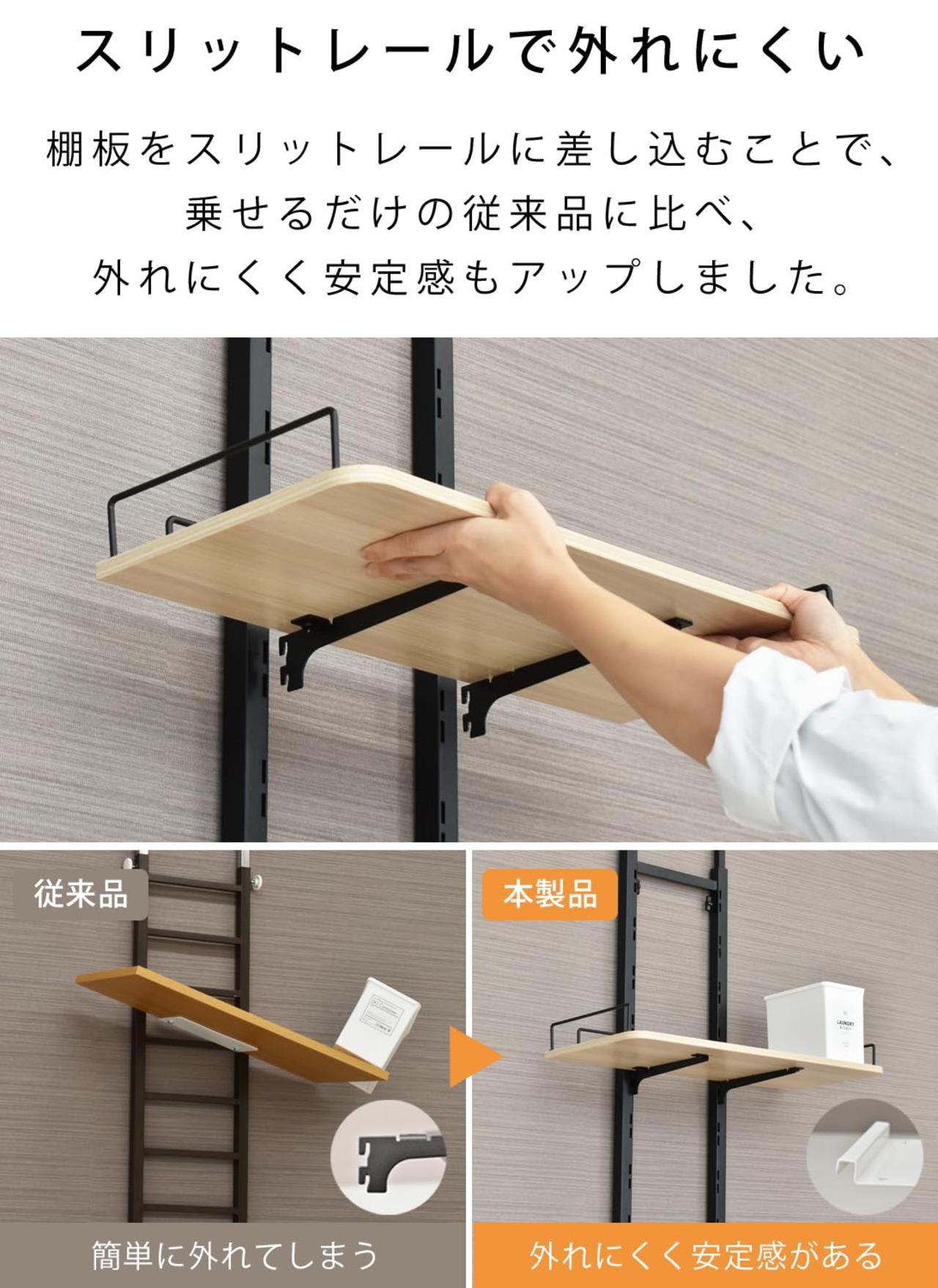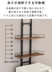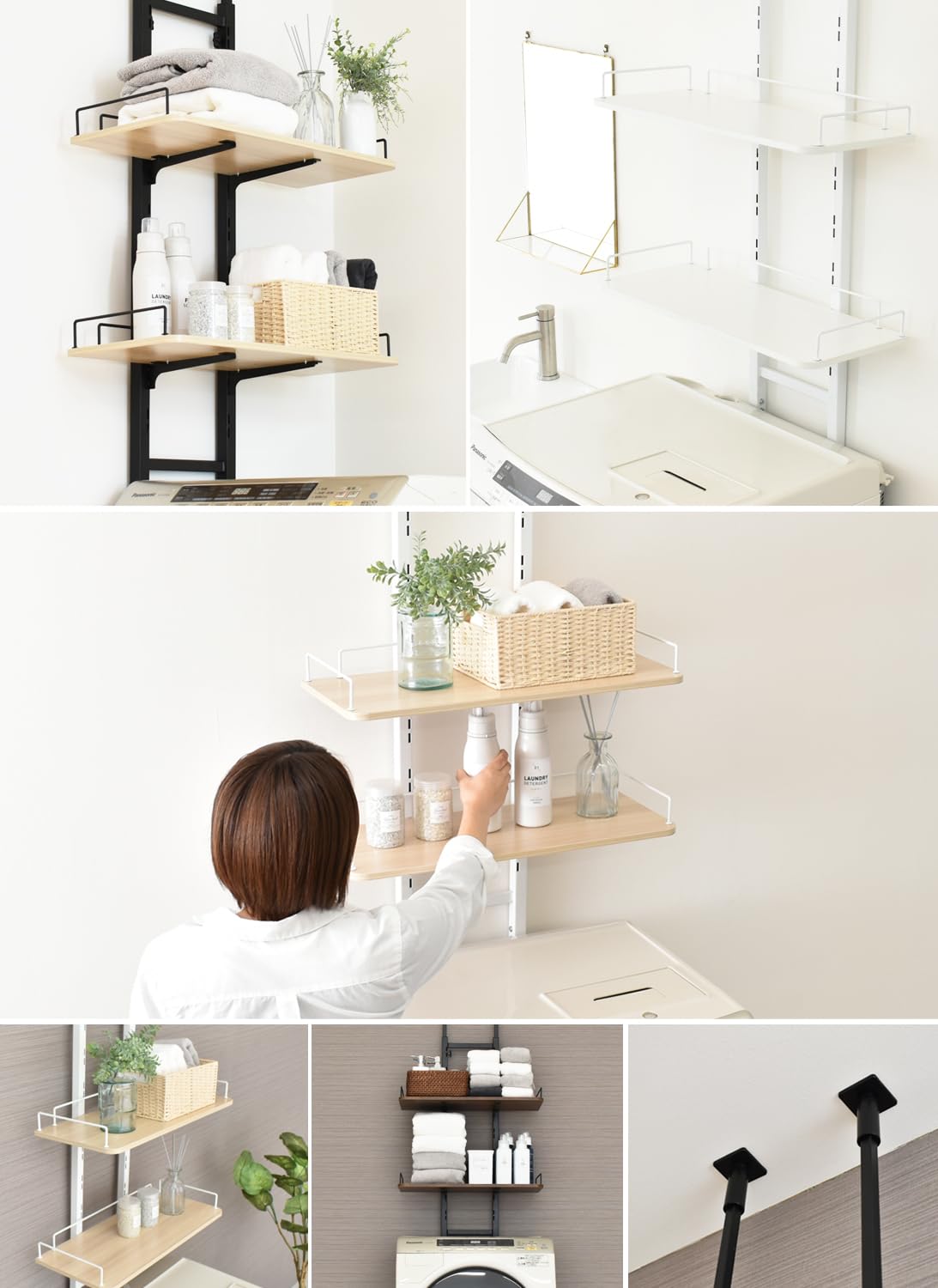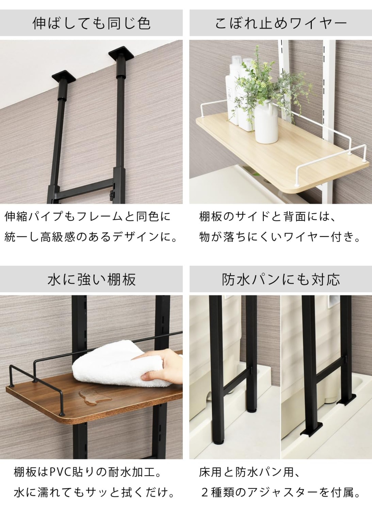 ekans(エカンズ) 棚付きランドリーラック 棚2段 突っ張りタイプ LSH-T200BN (ブラック×オーク)