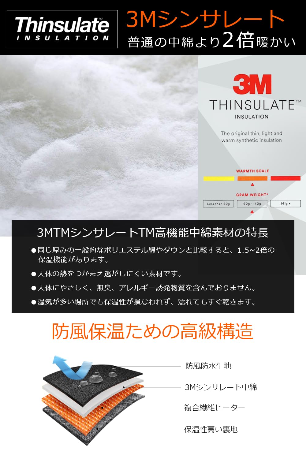 【3Mシンサレート中綿 & 複合繊維発熱糸】電熱グローブの中層材料は、3Mシンサレート中綿を採用し、厳選された原材料は、生地がより繊細で、より軽やかで、より良い保温効果を備えている。同厚のポリエステル綿と比べて、約1.5~2倍の暖かさです。また、複合繊維の発熱糸は従来材料より柔軟性があり切れにくく、耐久性も2〜3倍強化されています。中わた素材による均一な伝導効果で手全体が温まります。