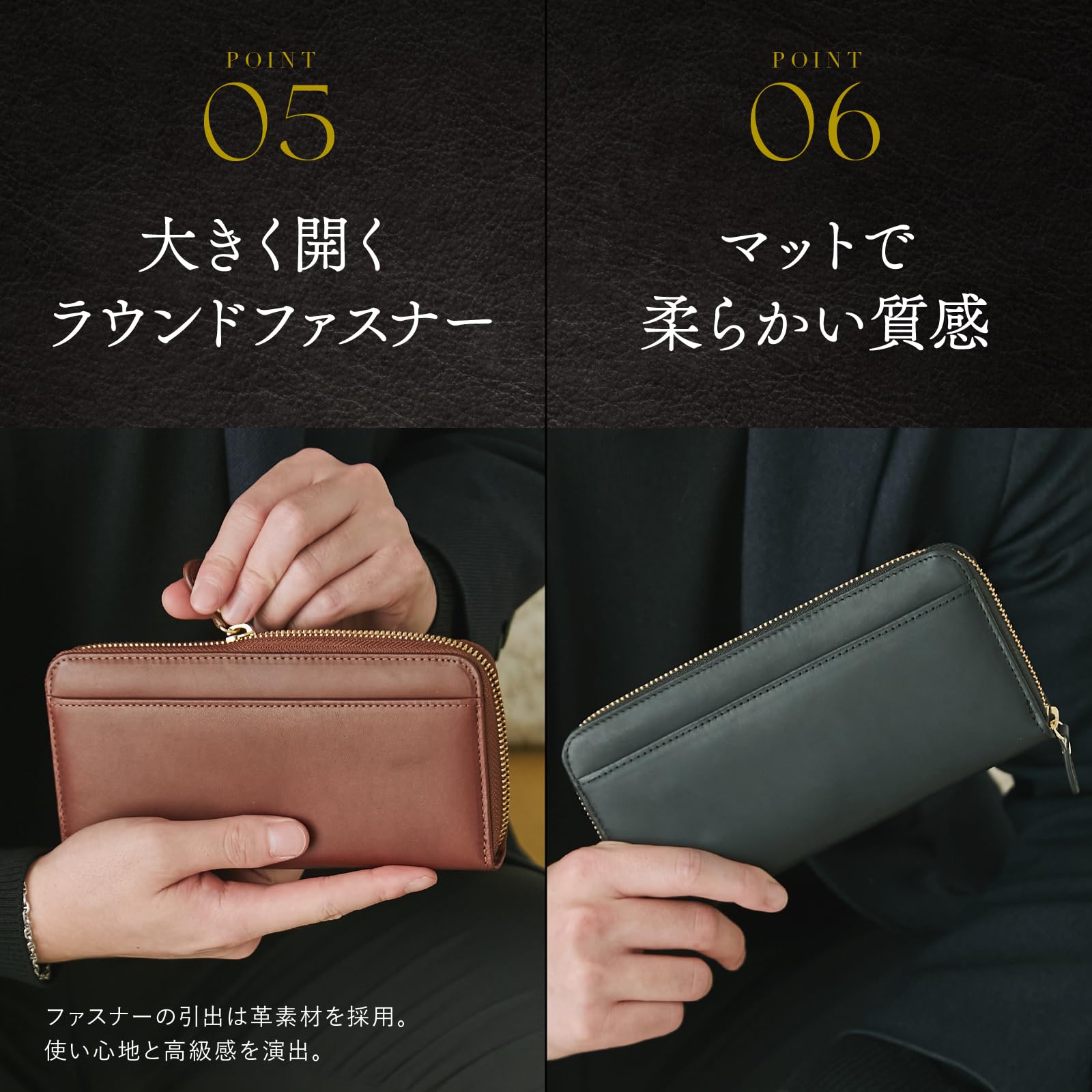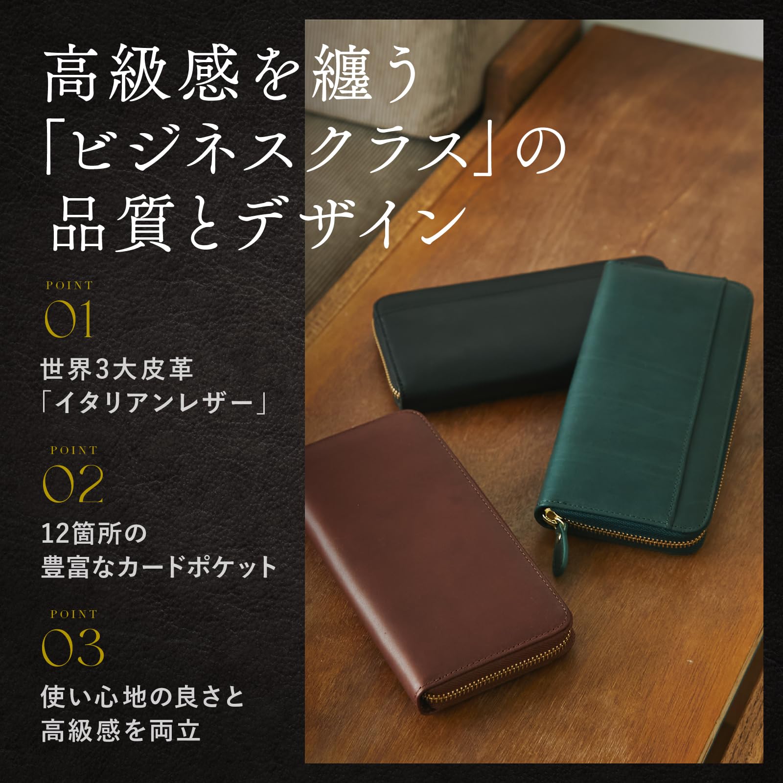 [グレヴィオ] イタリアンレザー 財布 長財布 本革 エルバマット ラウンドファスナー YKKファスナー メンズ