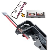 メタルインジェクション製法による精密ブレードは切味抜群、電線被覆を押さえて、常に芯線が中央になるよう設計。