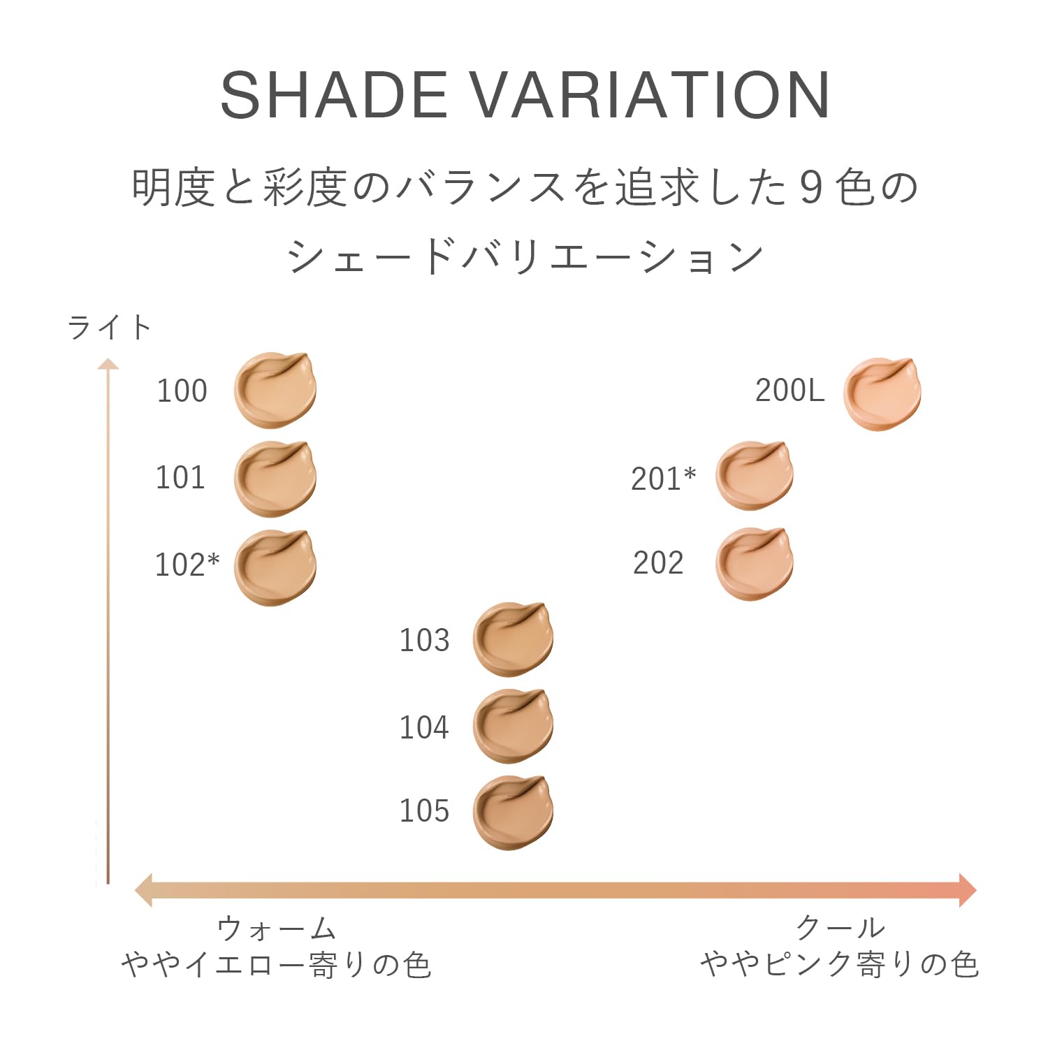 商品特長 SPF18 PA++ ※103 SPF20 PA++ 厳選された9種の保湿成分を配合。肌をうるおいで満たし、もっちりとした質感が長時間続きます。