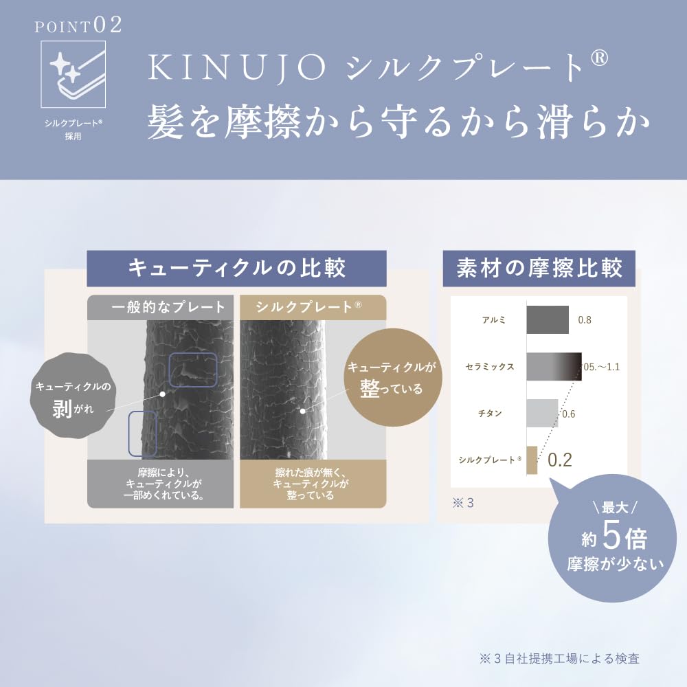 2012年の創業以来、進化し続けている独自素材の「シルクプレート」特殊な素材から作られたシルクプレートは、髪へのダメージを最小限に抑えます。髪表面の摩擦ダメージを抑えるので、引っ掛かりのない使い心地はストレスフリー。