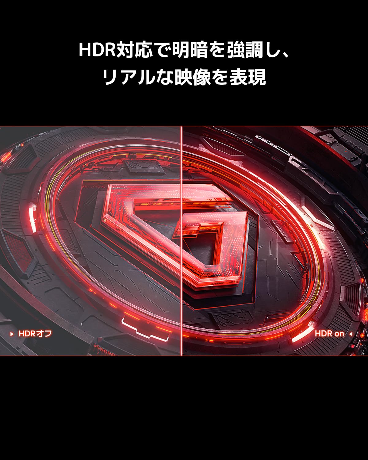 【HDR対応で明暗を強調し、リアルな映像を表現】 オンボードチップがHDRディスプレイに対応し、画面の輝度と彩度を強化してより鮮明なゲーミングビジュアルを実現します。