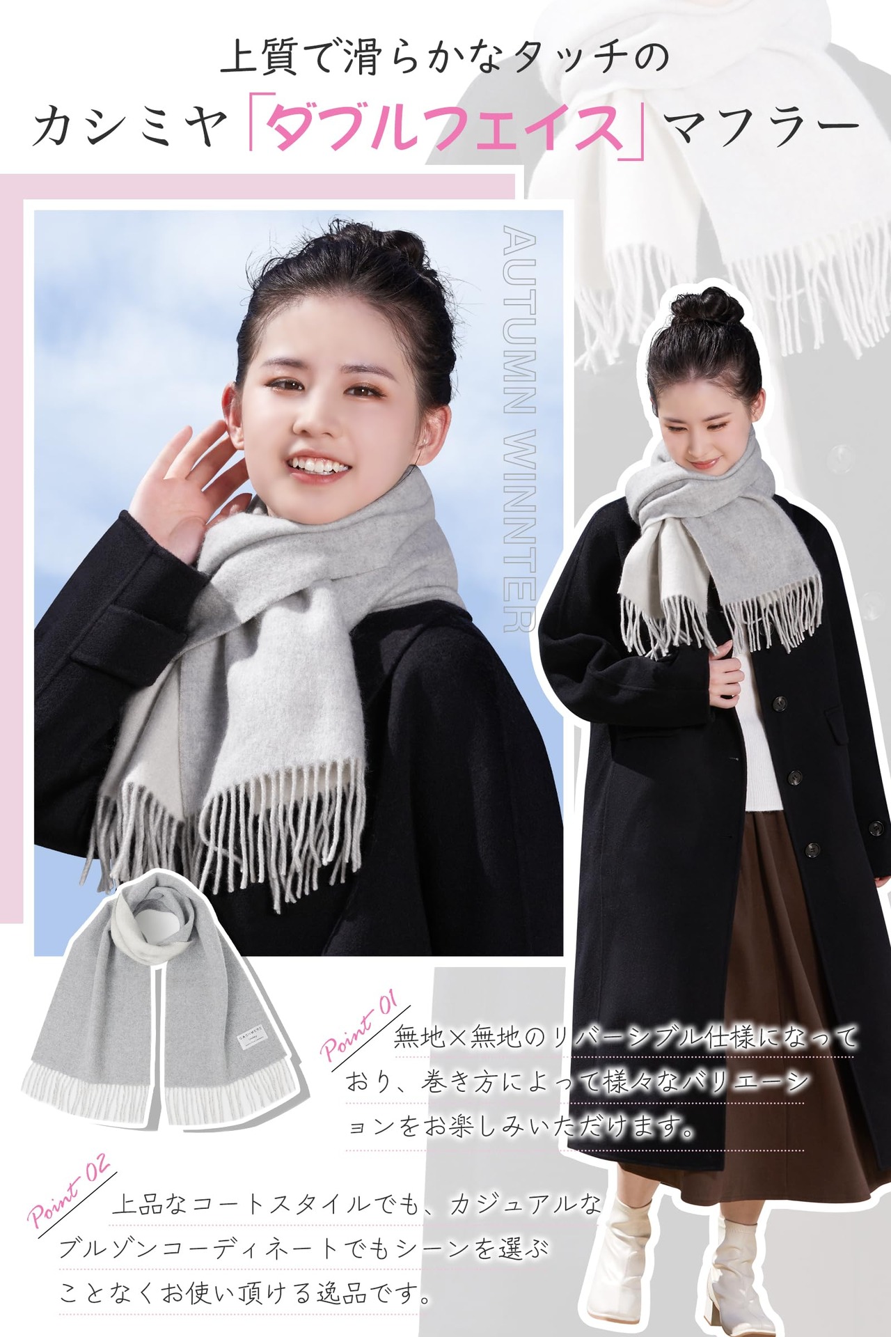【100%カシミヤ・リバーシブル仕様】一目で分かる質の高さと希少性の高さから「繊維の宝石」とも呼ばれるカシミヤを100%使用しています。繊維が細く柔軟なため、非常に柔らかい肌触りと上品な光沢感を備えています。その上質な素材感に加え、リバーシブル仕様になっており、両面使える嬉しい2way仕様でお使いいただけます。巻いたときにチラリと覗く裏面がアクセントとなりオススメです。上質な付け心地、カシミヤ特有のヌメリのある表情は、オンオフ問わずお使いいただける一枚は持っておきたいアイテムです。