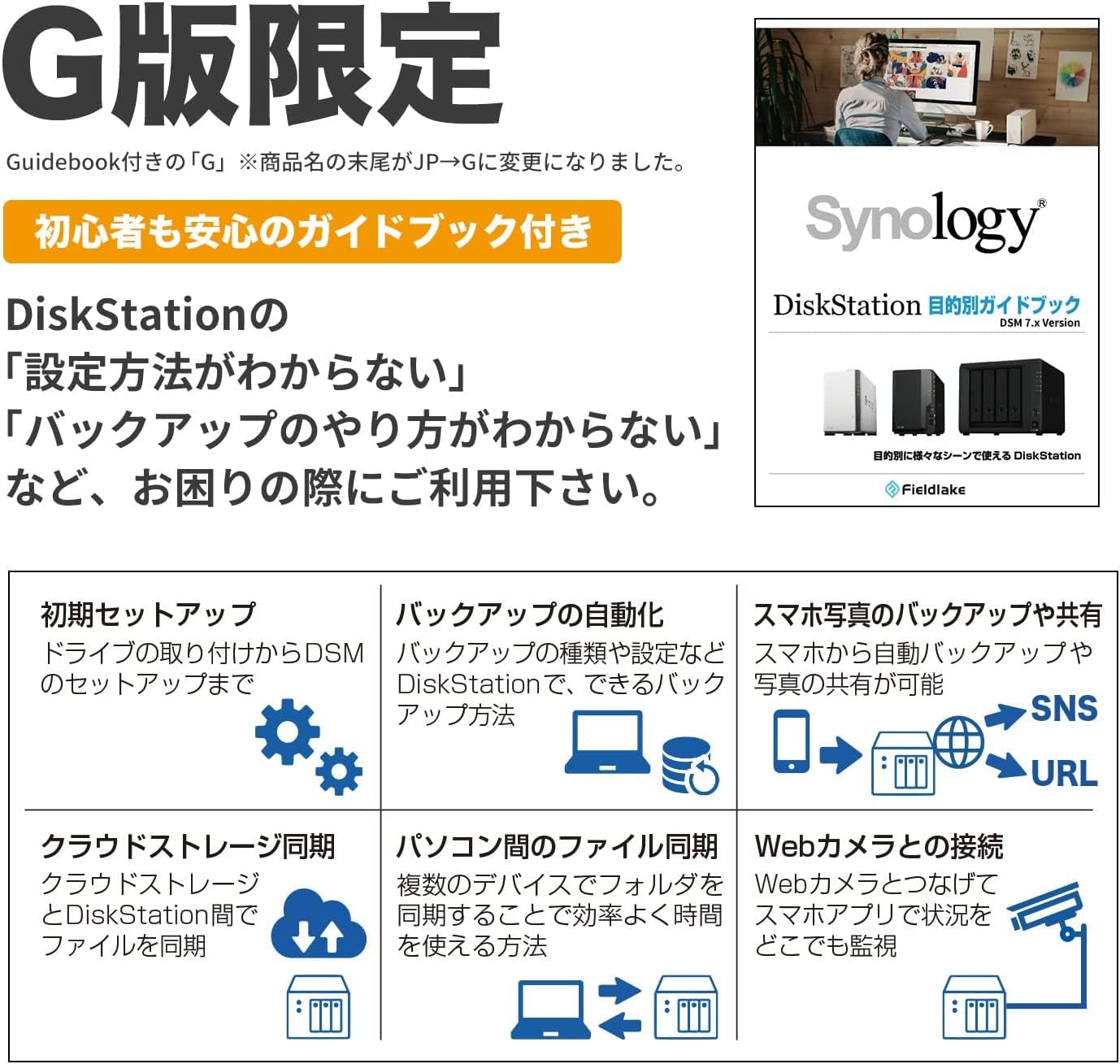人気のSynologyNASに、図解で詳しい使い方を解説したガイドドブック(非売品)をセットにした商品になります。