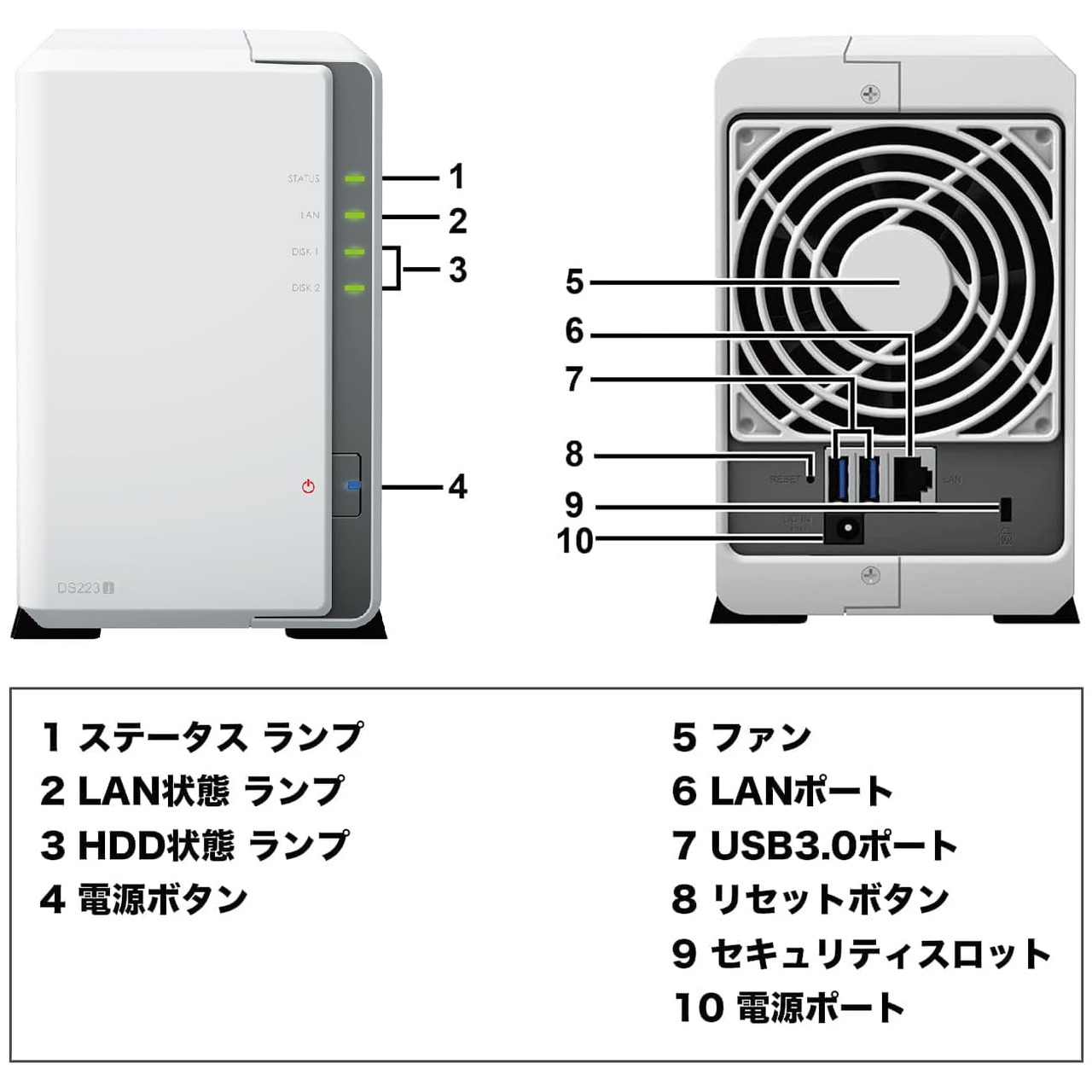 【製品仕様】メーカー型番:DS223j CPU:Realtek RTD1619B(4core) メモリ:1GB LANポート:1Gbitx1