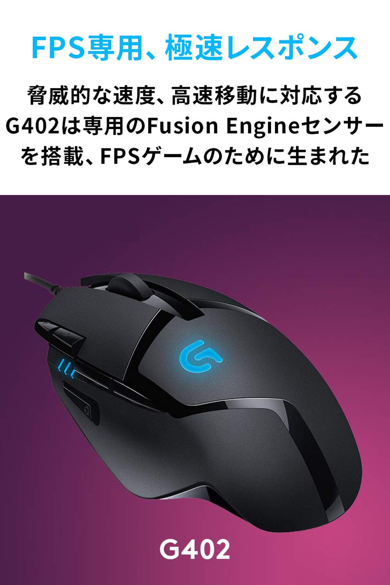 【Logicool G G402 有線ゲーミングマウス】専用のFusion Engineハイブリッドセンサーと32ビットARMプロセッサーを搭載したFPSゲーム用のゲーミングマウス。