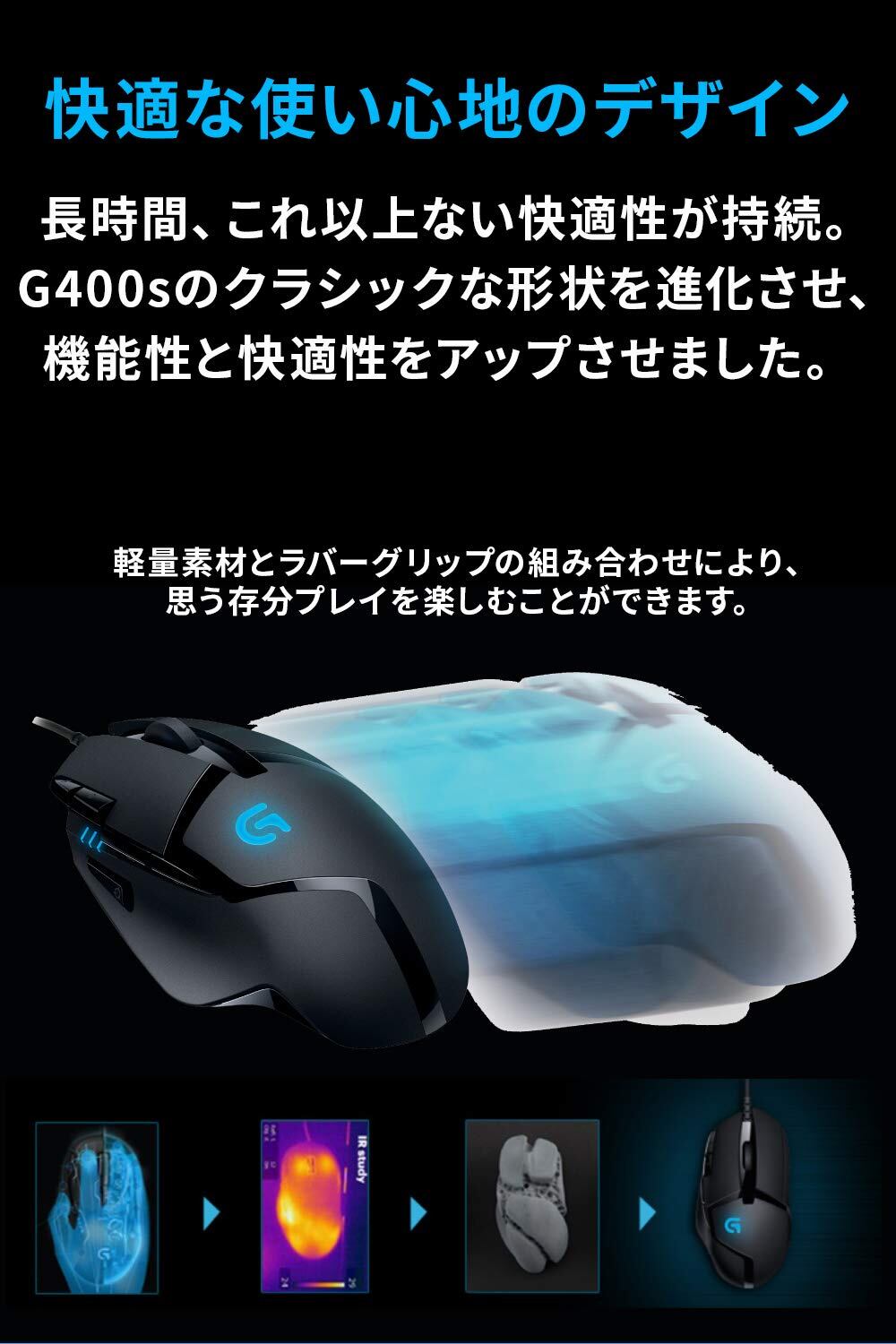 【快適な使い心地のデザイン】長時間、これ以上ない快適性が持続。G400sのクラシックな形状を進化させ、機能性と快適性をアップさせました。軽量素材とラバーグリップの組み合わせにより、思う存分プレイを楽しむことができます。
