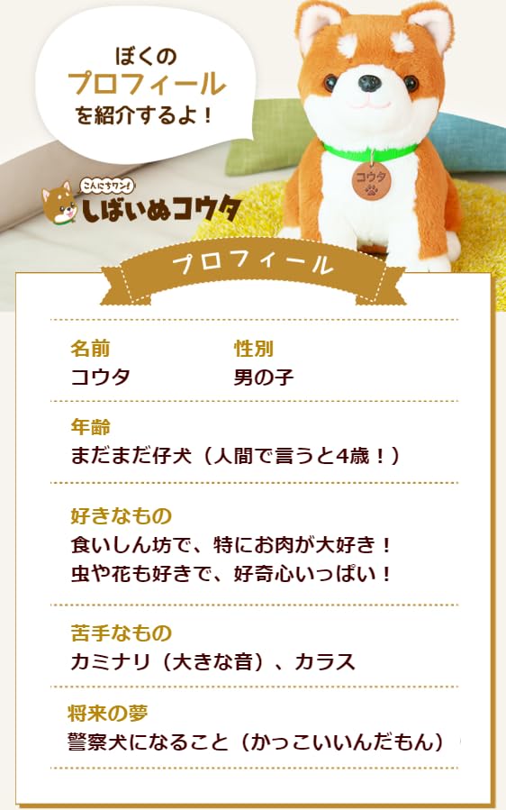 【音声認識ぬいぐるみ】コミュニケーションロボット『しばいぬコウタ』は簡単な会話を楽しむことができる癒しのワンちゃんです。
