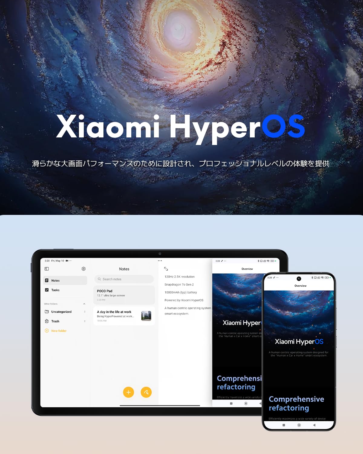 【Snapdragon7s Gen 2搭載】最先端の4nmフラッグシッププロセッサで作られたPOCO Padは、パフォーマンスを向上させ、電力消費を削減し、マルチメディアやゲームタスクを同時に処理します。8+256GB*のストレージスペースを備えたPOCO Padは、日常のニーズに最適です。最大1.5TBの拡張ストレージが可能で、より多くの「デジタルの思い出保存」に対応します。