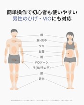 自宅で簡単セルフケア(エステに通わず、自宅で本格脱毛);全身脱毛ケア(顔・腕・脚・脇・VIOゾーン);男女兼用(メンズ・レディース両方に対応);敏感肌の方にも… 表示を増やす
