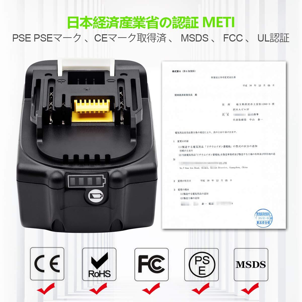 マキタ 18V バッテリー BL1860B 互換: 対応マキタバッテリー 6Ah 電動工具用 マキタ18V 電池残量表示機能 PSE認証済 4個セット 1億円の製造物責任険付