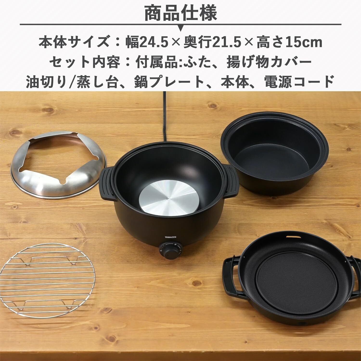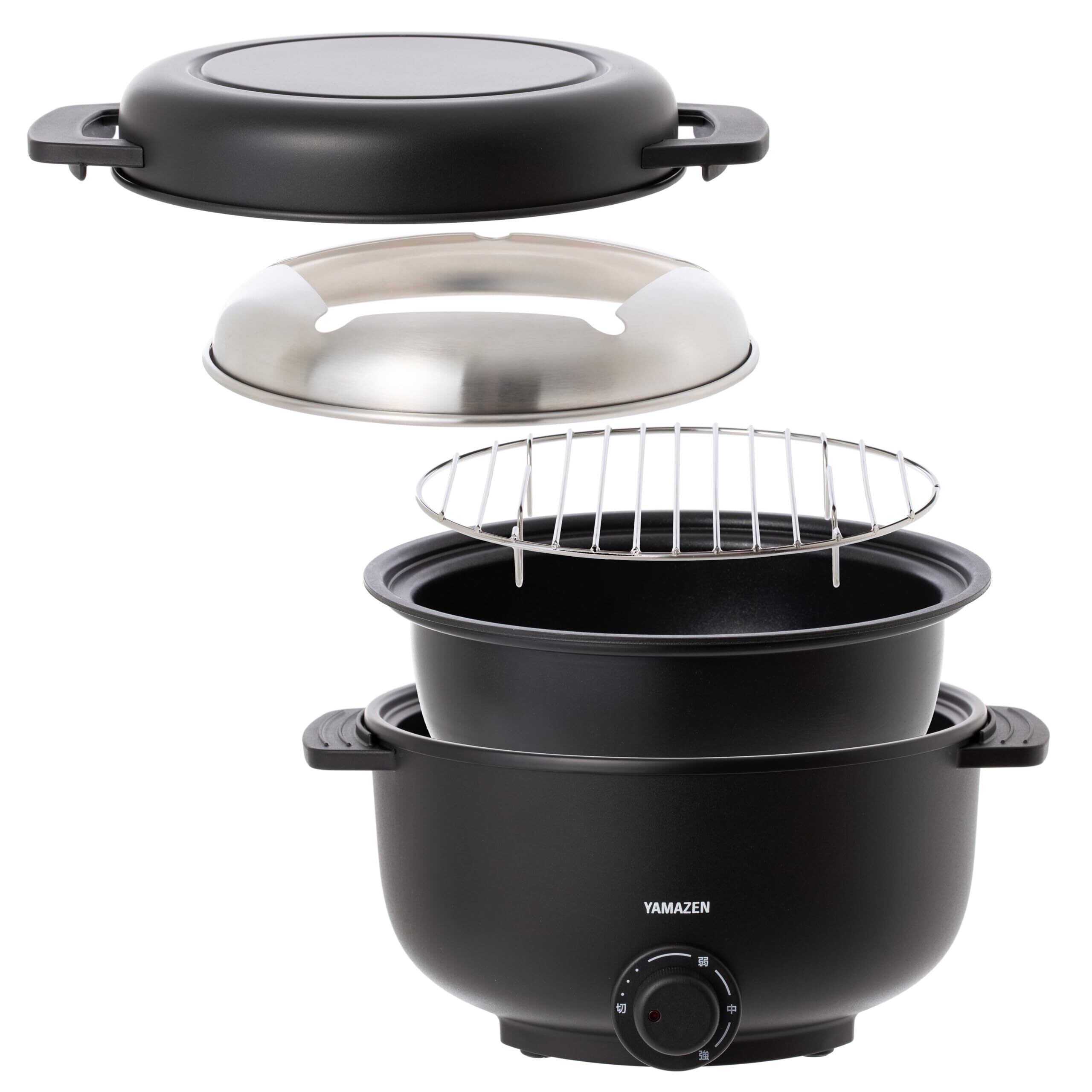 【新春セール】[山善] 電気鍋 グリル鍋 小型 卓上 一人用 5WAY (焼く/蒸す/揚げる/煮る/フォンデュ) デキタテポット 温度調整機能 着脱式 丸洗い可能 ブラック YMCP-S650(B) | ニコニコSHOP