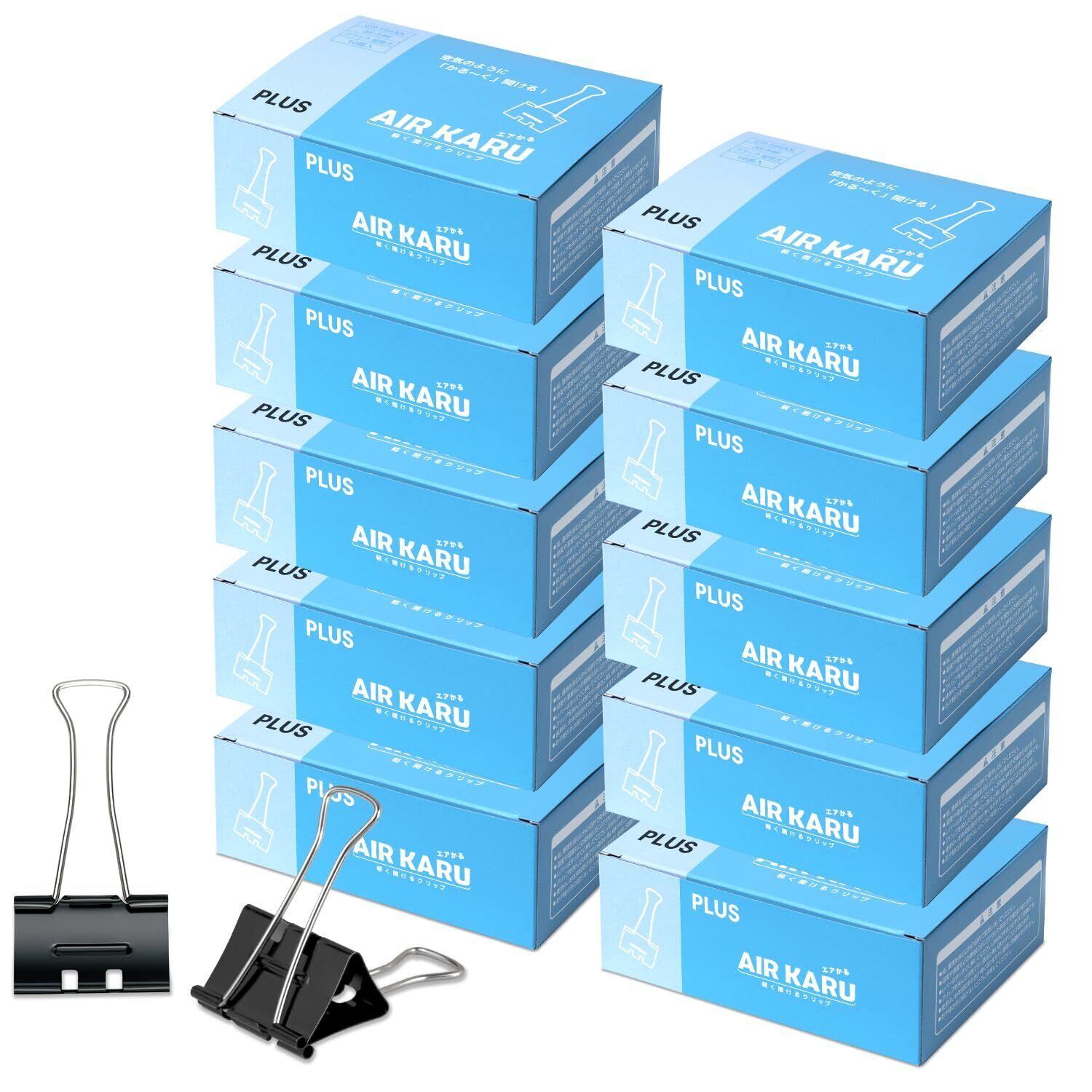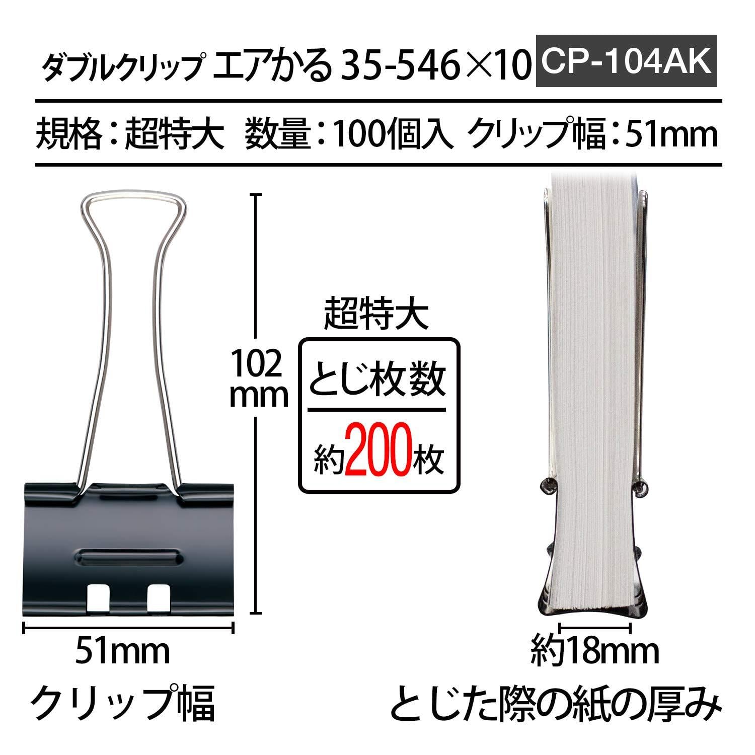 プラス ダブルクリップ エアかる 超特大 ブラック 100個(10個入×10箱) 35-546×10