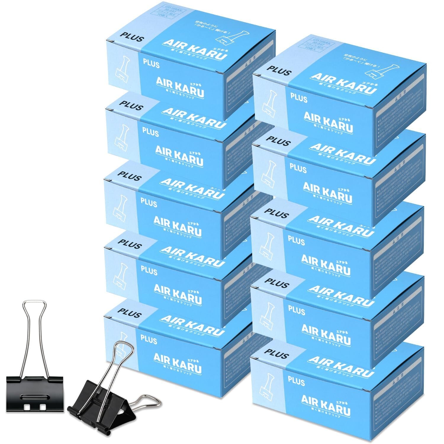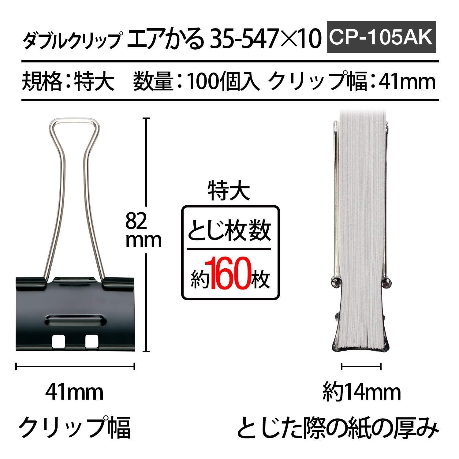プラス ダブルクリップ エアかる 特大 ブラック 100個 (10個入×10箱) 35-547×10