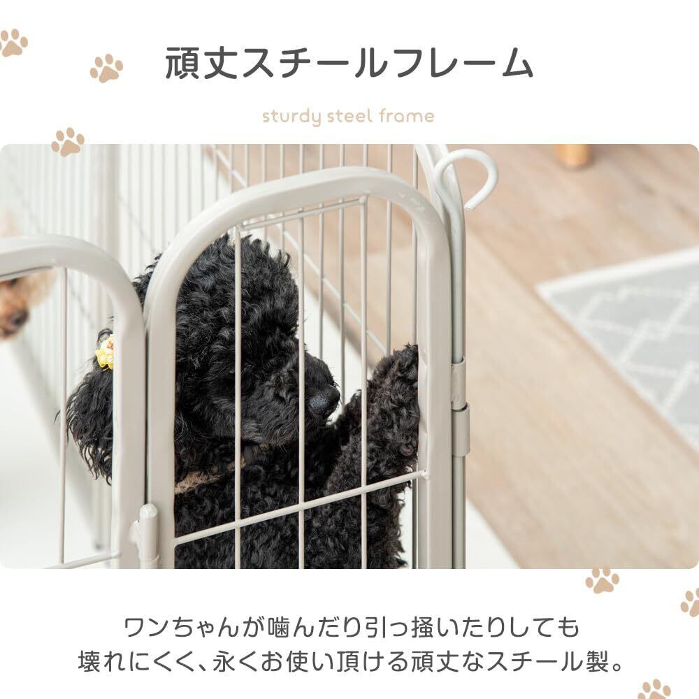 【備考】※曲線部や若干の個体差、組立などにより表記と多少の差異が生じる場合がございます。予めご了承ください。 ※商品は、モニターによって色合いが異なって見える場合があります。 ※フェンス幅は4cm/5cmです。超小型犬や、パピー期の場合 事前に愛犬のサイズをご確認の上ご注文いただくようお願いいたします。 ※床の素材によってはゴム製の滑り止めが効きにくい場合がございます。