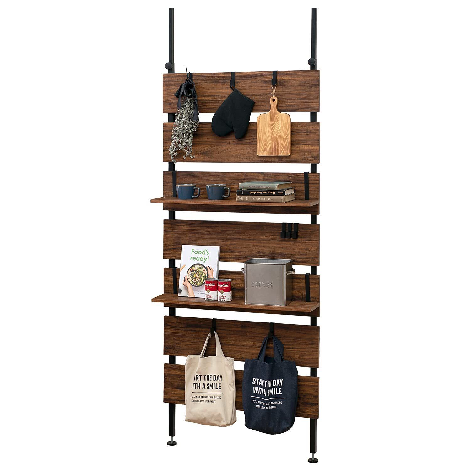【新着商品】萩原(Hagihara) 突っ張り ラック つっぱり 棚 壁面収納 ウォールラック 【DIY・穴あけ・工事が不要】簡単取付 段差対応 木目調 幅80 スリム ブラウン KTR-3148BB | ニコニコSHOP