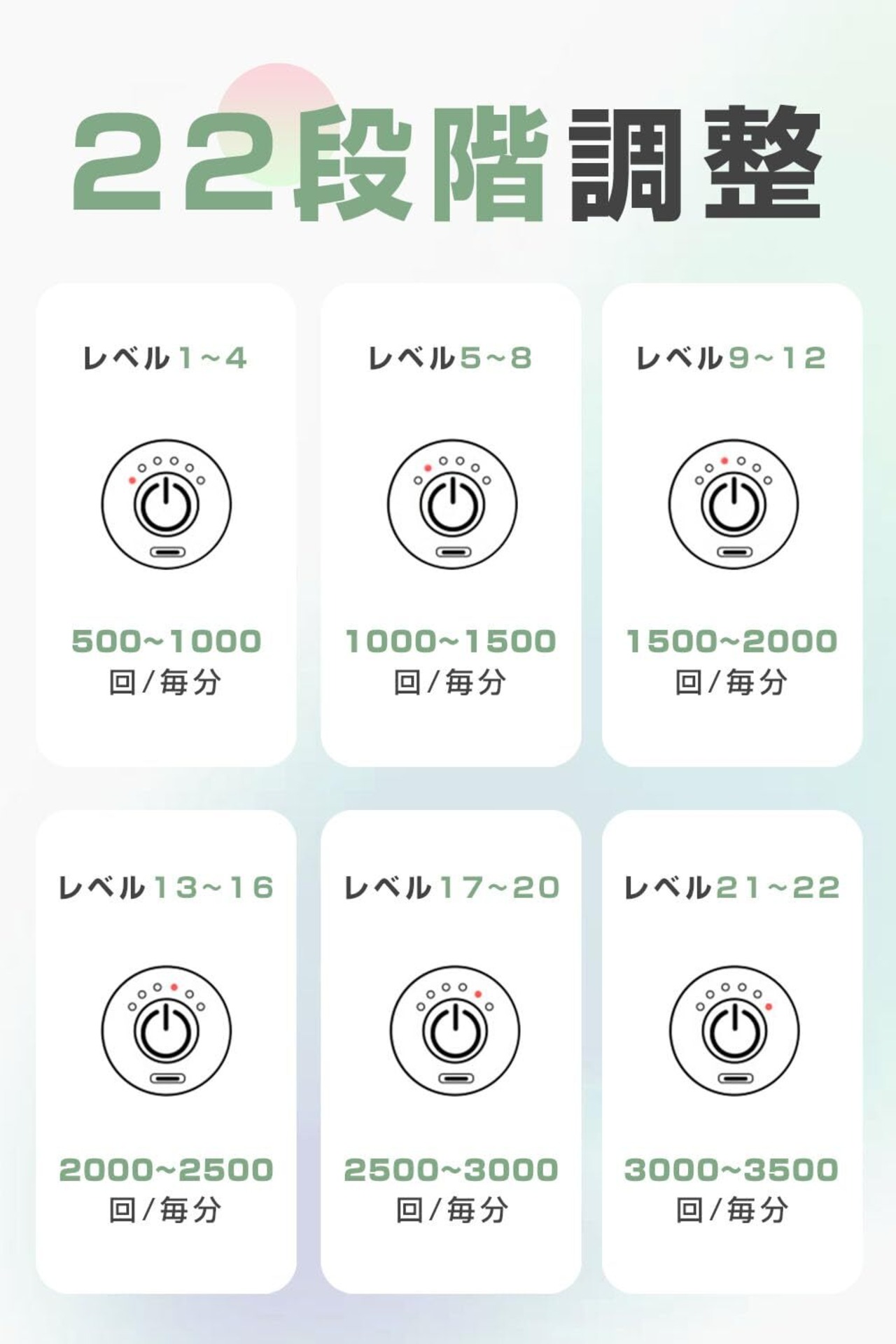 【22段階の強度調整、低ノイズ設計】22段階レベルと3種類のインテリジェントモードを提供し、異なるニーズやシーンに応じて調整可能です。45dBの低ノイズ設計により、使用中の騒音を最小限に抑え、静かで快適な使用体験を提供致します。
