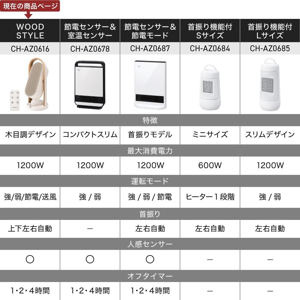 【在庫処分】スリーアップ セラミックヒーター 上下左右自動首振り 節電センサー スイング 1200W 送風機能 WOOD STYLE リモコン付 アイボリー CH-AZ0616IV | ニコニコSHOP
