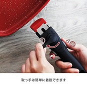 ハンドル部分の取り外しが出来ます。ハンドルを取る事でお皿に早変わりするので、食卓にそのまま出せます。