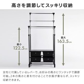 2本のハンガーバーと4つの引き出しで収納力たっぷり。