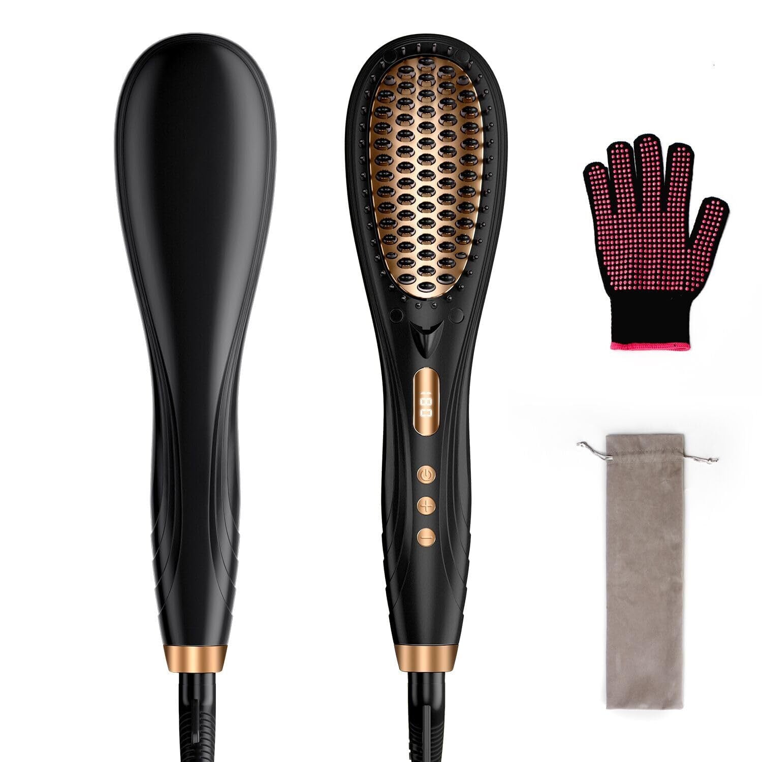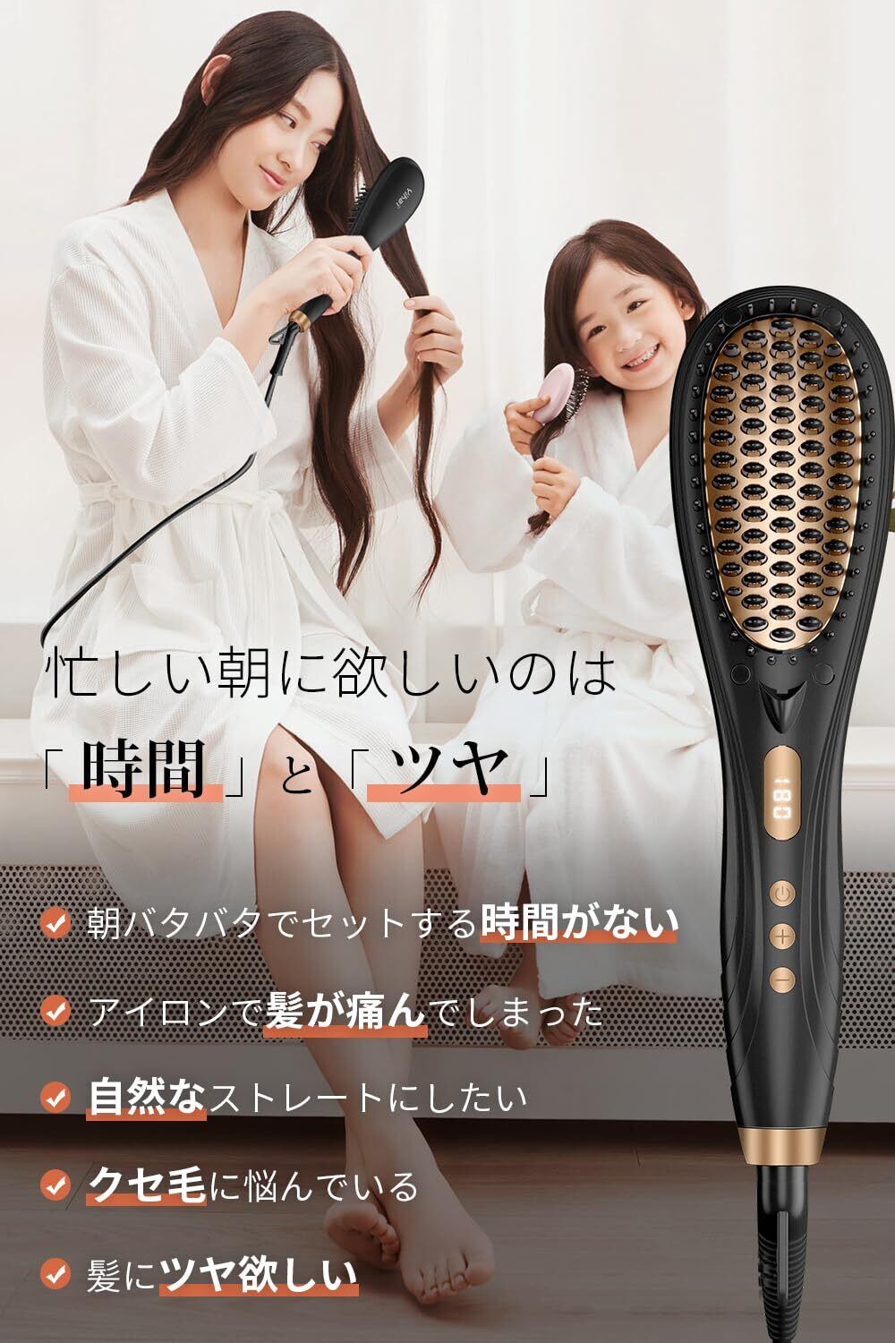 【在庫処分】ストレートブラシ ヘアアイロン ヒートブラシ 【マイナスイオン機能・80℃~230℃温度調節】 ブラシアイロン 急速加熱 16種温度調節 温度記憶 火傷防止 LEDデイスプレー 簡単ストレート 前髪 静電気防止 誤作動防止 電熱ヘアブラシ 60分オートオフ ヘアケア 携帯便利 家庭/出張用/海外対応 (ブラック) | ニコニコSHOP