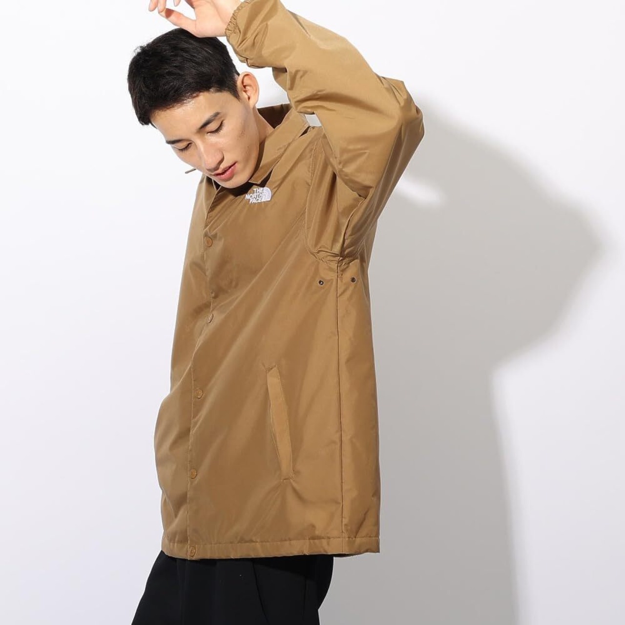 THE NORTH FACE定番のコーチジャケット。2024年秋冬シーズンよりサイズを見直し、時流に合わせたゆとりのあるサイズ感にアップデートしました。はっ水加工を施したナイロンオックス生地は適度な厚みで、上品な光沢感が特徴です。裏地は軽く着心地のよい起毛トリコット生地。フロントのドットボタンは、開衿で着用しても襟の形が美しい位置に配置しています。左胸に刺繍ロゴを配置したシンプルなデザイン。ゆったりとしたシルエットで、裾は両脇のアジャスターで簡単に調節が可能です。
