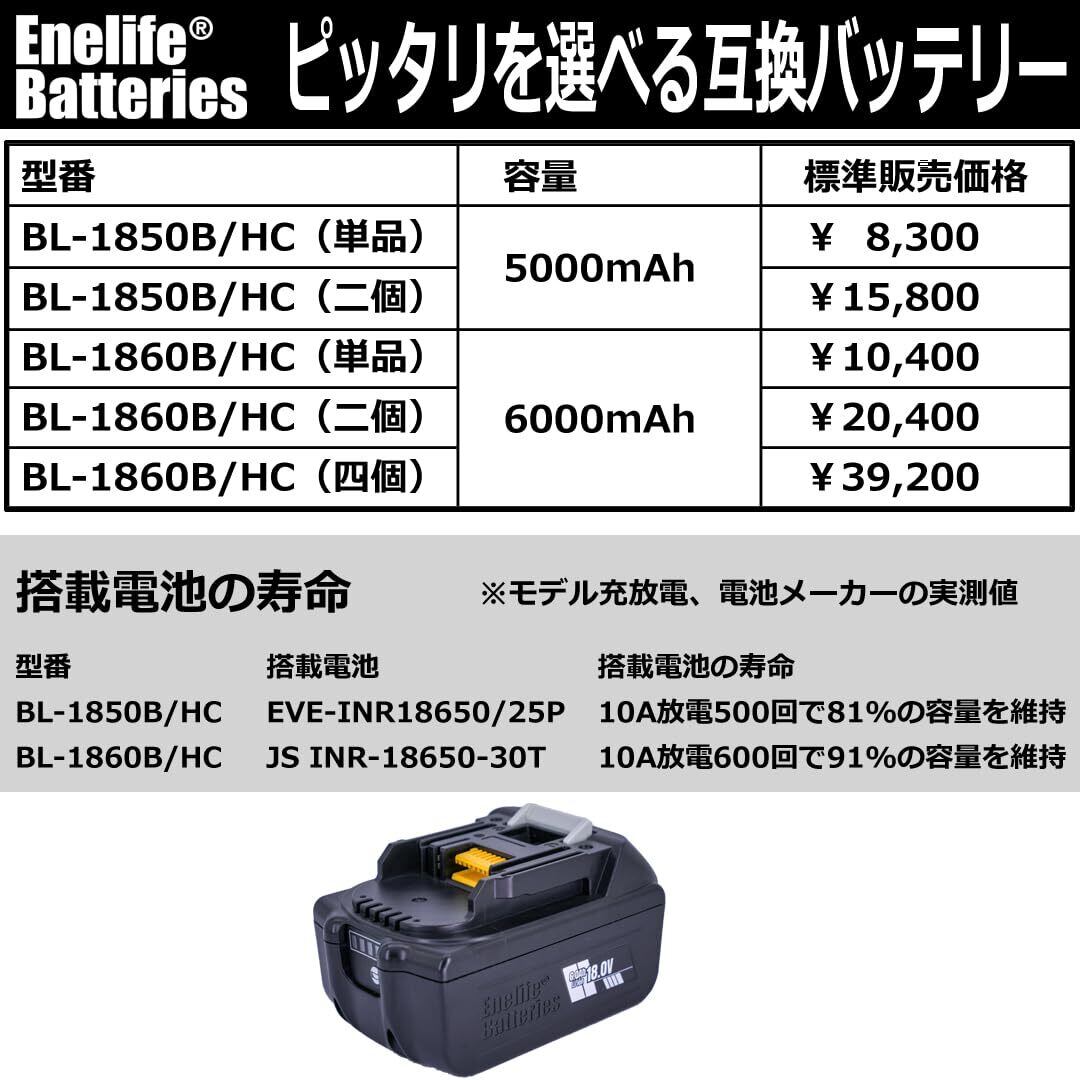 【在庫セール】Enelife マキタ 互換 バッテリー 18V シリーズ <高出力> 長寿命電池搭載 日本メーカー保証 残量表示機能 5億円製造物責任保険付 (6000mAh/二個セット(BL1860B/HC)) | ニコニコSHOP