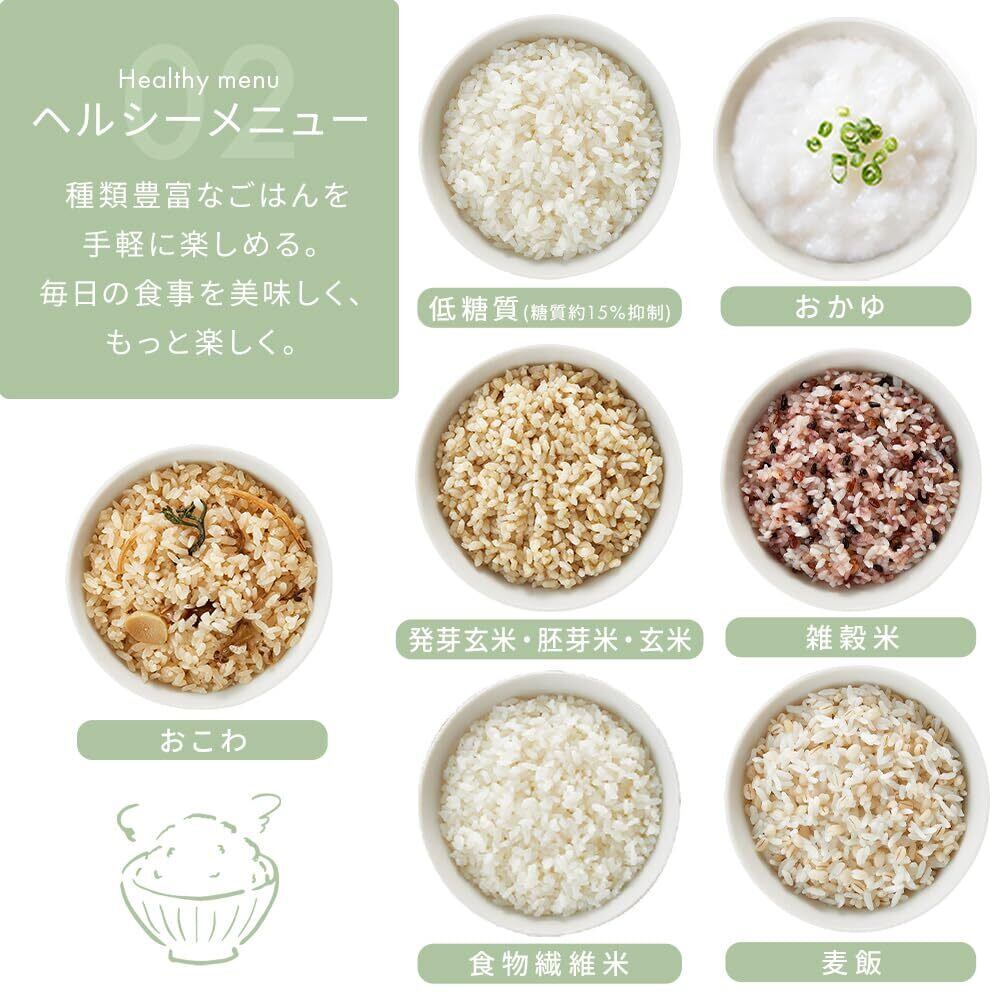・ヘルシーメニュー:9種類のヘルシーメニュー「低糖質(糖質約15%抑制)/おかゆ/食物繊維米/おこわ/雑穀米/発芽玄米/胚芽米/玄米/麦飯」があります。