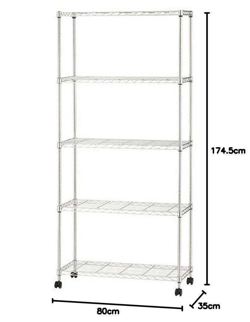 アイリスオーヤマ(IRIS OHYAMA) メタルラック本体 5段 キャスター付き 防サビ加工 ポール径19mm 幅80×奥行35×高さ174.5cm メタルシェルフ スチールラック サビに強い シルバー SEM-8018