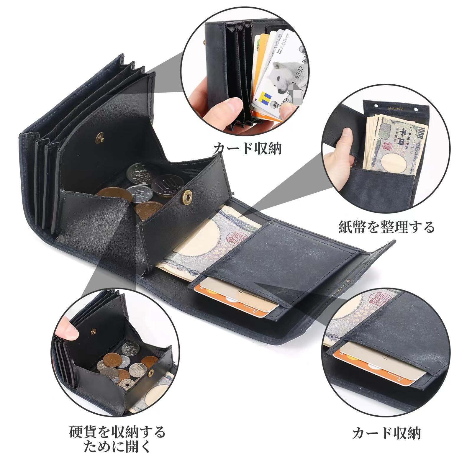 【商品仕様】財布サイズ:縦11cm、横9cm、厚さ2.5cm、表面にはイタリアの高級皮革を使用、内部にはカーボンファイバーを使用しています。硬貨は約20枚、カード約15枚、紙幣は10〜30枚ほど収納できます。