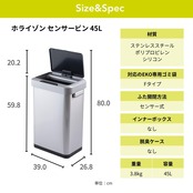 EKO ゴミ箱 自動開閉 ホライゾンセンサービン シルバー 45L ふた付き インナーボックス無し EK9262MT-45L